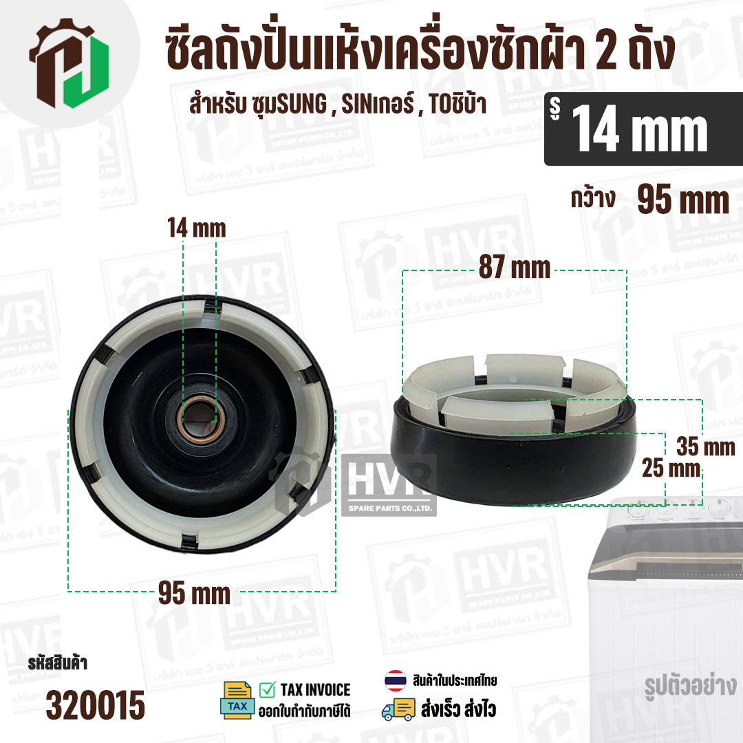 ซีลถังปั่นแห้งเครื่องซักผ้า SAMSUNG , SINGER , TOSHIBA VH-H140WT ( รู 14 mm x ขอบ 95 mm 6 เขี้ยว ) #320015
