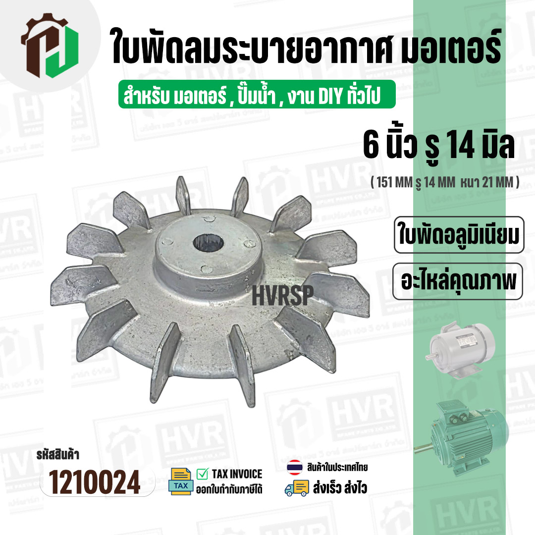 ใบพัดลมมอเตอร์ ( อลูมิเนียม ) 6 นิ้ว รู 14 mm. ( 151 mm.รู 14 mm. ดุม 49 mm. ) ( ใบพัดลมระบายอากาศ ) #1210024