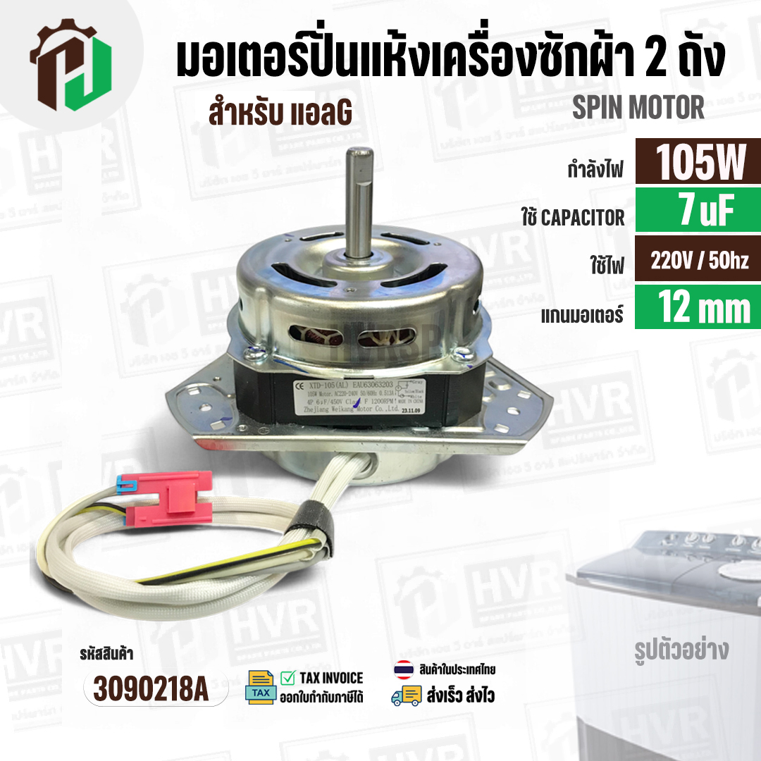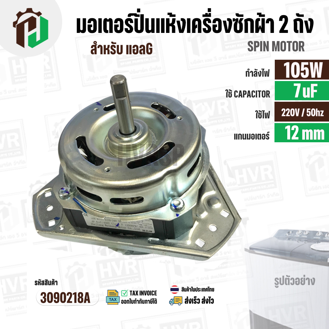 มอเตอร์ปั่นแห้ง เครื่องซักผ้าสำหรับ LG ขนาด 9.5 - 14 kg ( แกน 12 mm. 105W 220V 7 uF ) EAU63063203 ( แท้ ) #3090218A