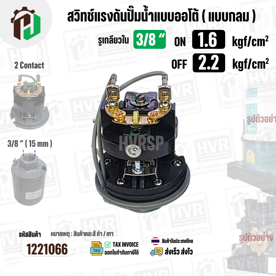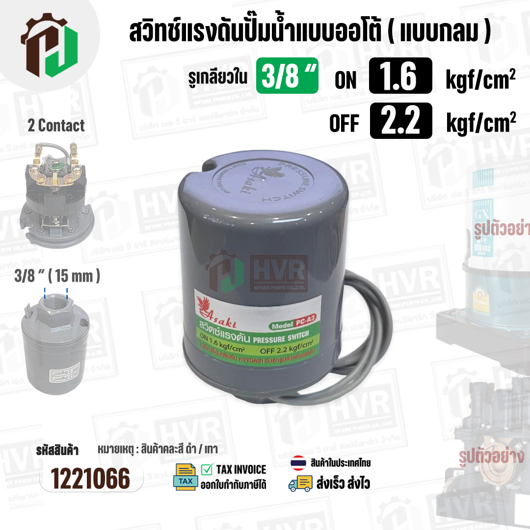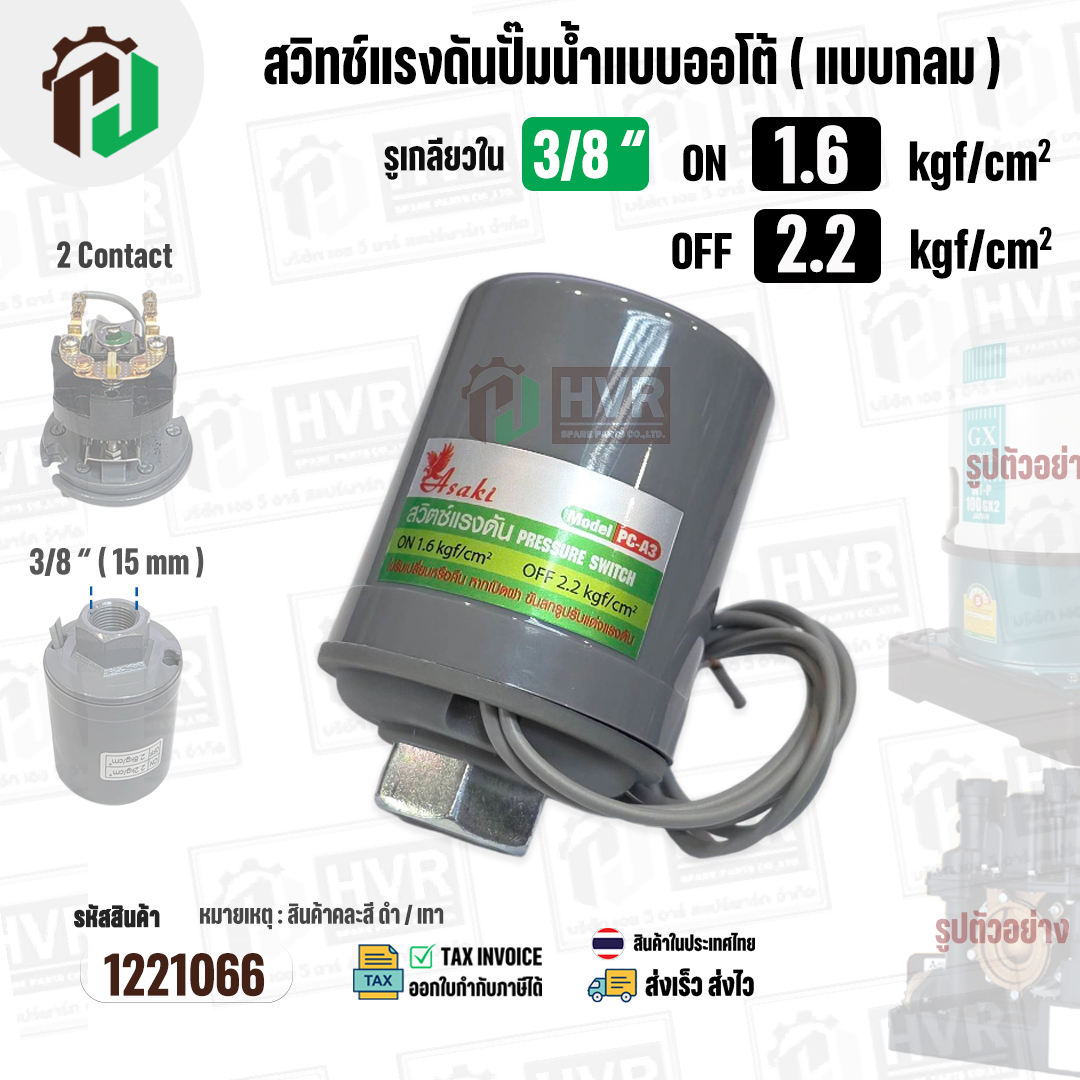 > อะไหล่ปั้มน้ำไฟฟ้า > สวิทซ์ปั้มน้ำ > สวิทซ์ปั้มน้ำออโต้ ( แบบกลม ) ON  1.6  kgf/cm2 / OFF  2.2  kgf/cm2  รูเกลียวใน 3/8"" ( 2 Contact  ) ( Asaki )