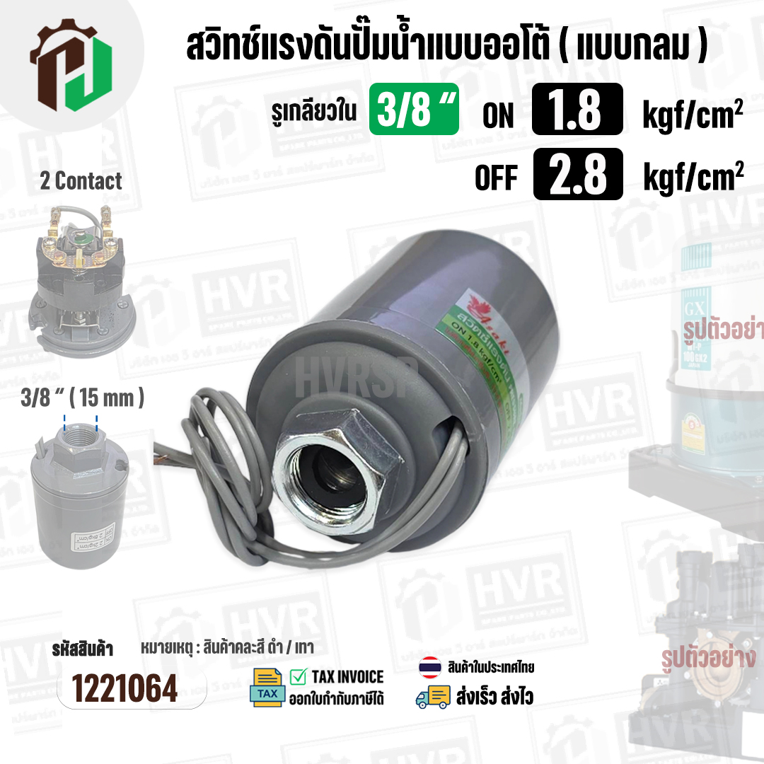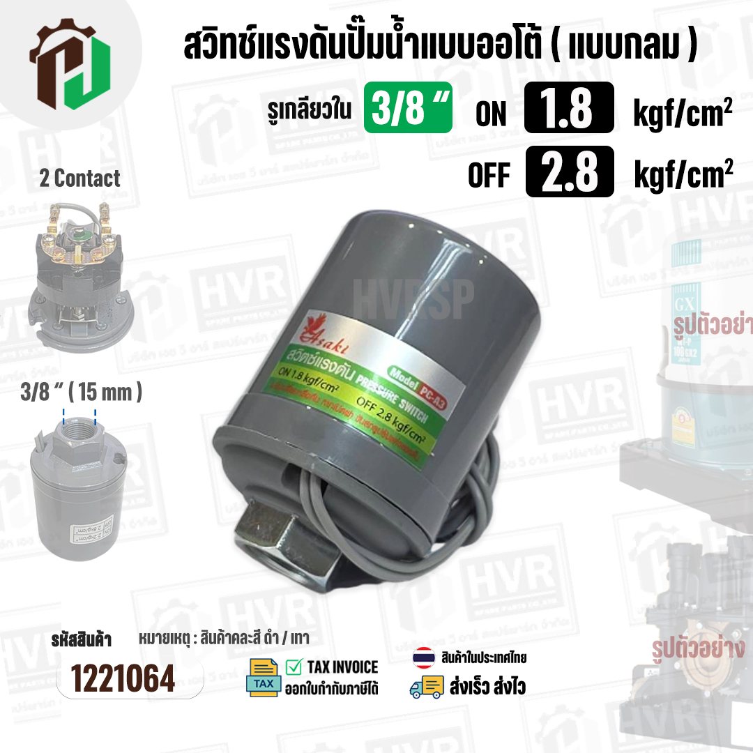 > อะไหล่ปั้มน้ำไฟฟ้า > สวิทซ์ปั้มน้ำ > สวิทซ์ปั้มน้ำออโต้ ( แบบกลม ) ON  1.8  kgf/cm2 / OFF  2.8  kgf/cm2  รูเกลียวใน 3/8" ( 2 Contact  ) ( Asaki )  #H