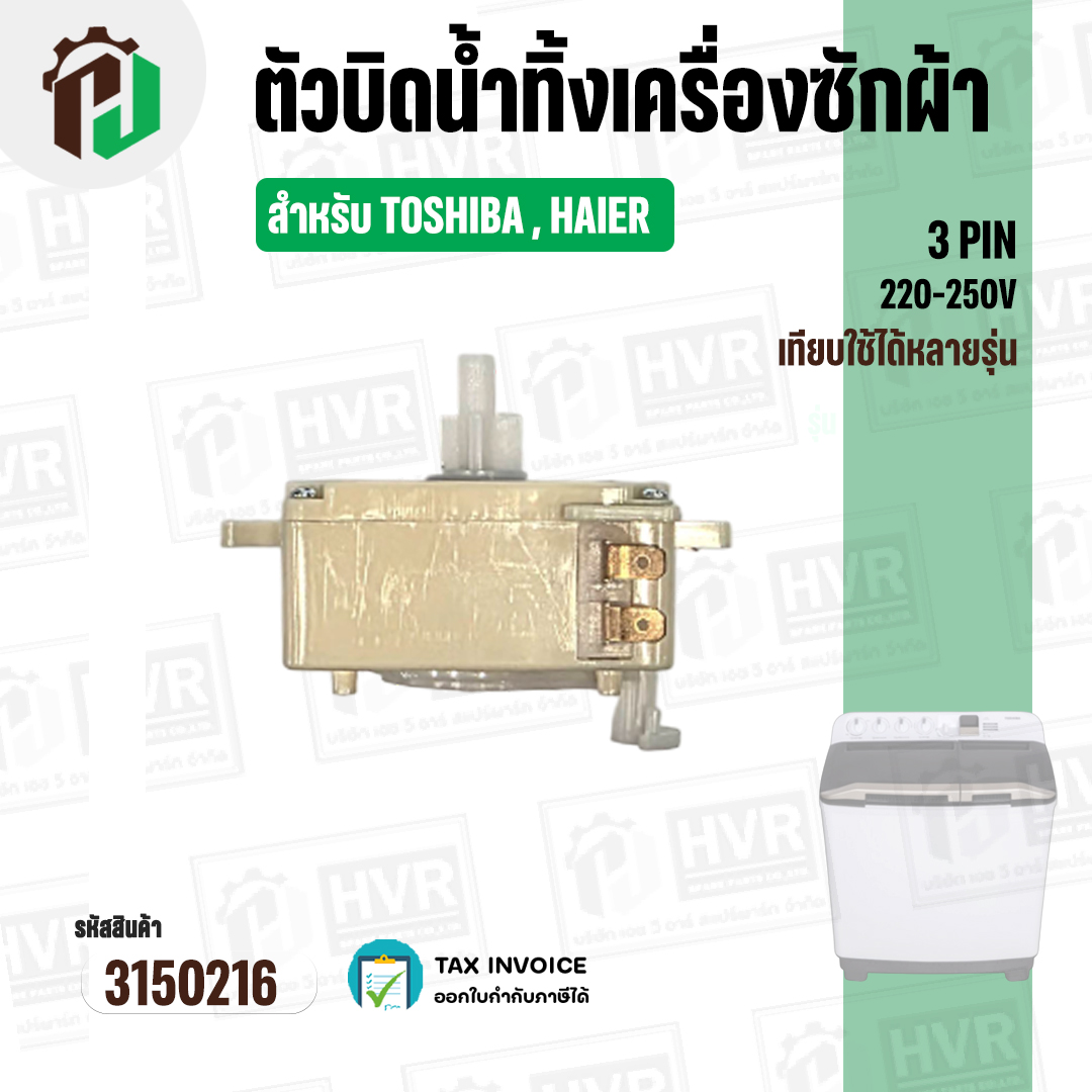 ตัวบิดน้ำทิ้งเครื่องซักผ้า TOSHIBA , HAIER ( ทรงเหลี่ยม ) ( สีขาว ) ( 3 PIN ) #3150216