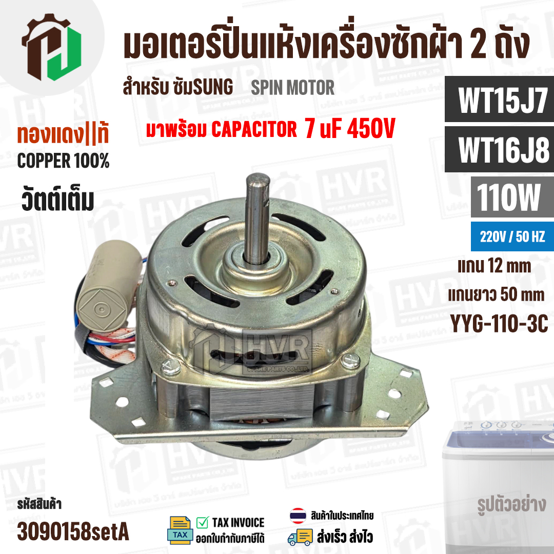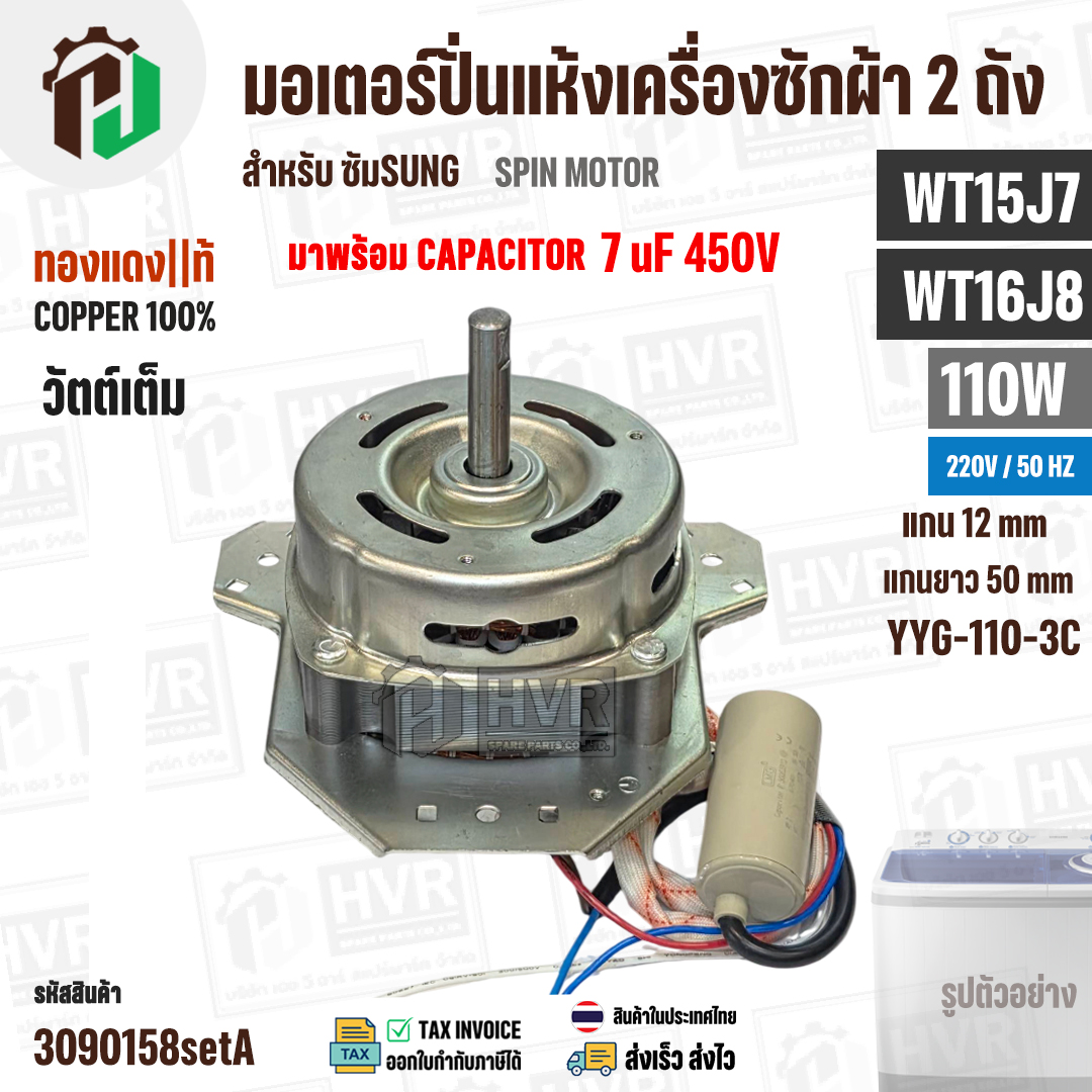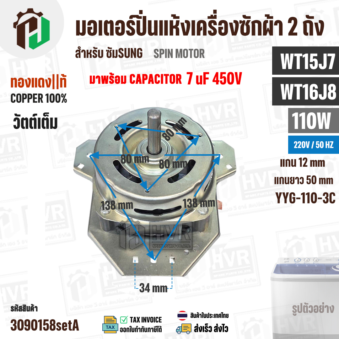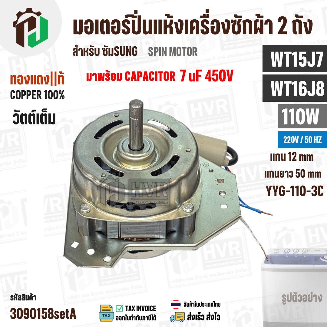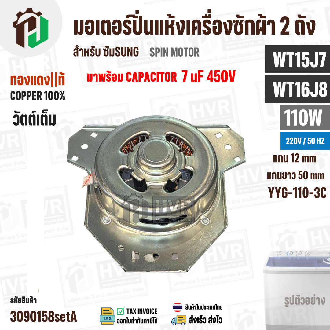 มอเตอร์ปั่นแห้ง SAMSUNG WT15J7 , WT16J8 ( 13-14 kg.) 110W 220V 7 uF ( YYG-110-3C ) ( ทรงคางหมู ) ( ทองแดงแท้ ) #อะไหล่เครื่องซักผ้า #3090158