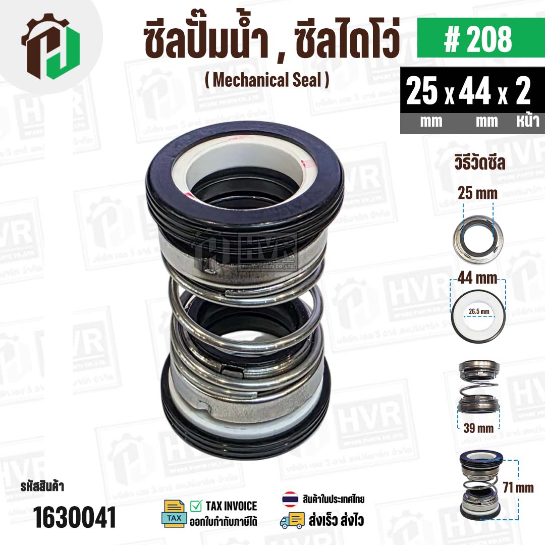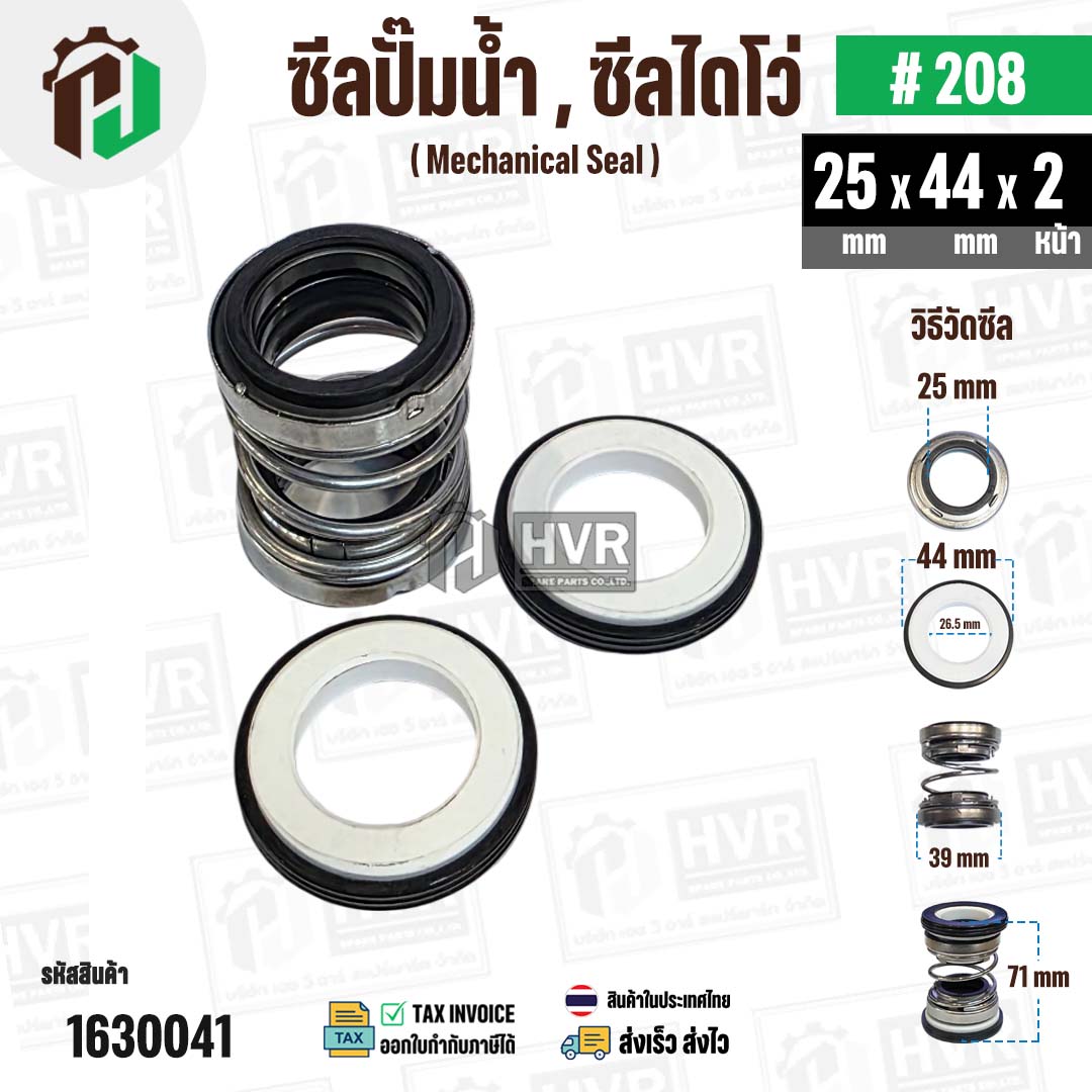 >> ขนาดซีล แกนเพลาปั๊มน้ำ 25 mm. x ขอบบางซีลกระเบื้อง 44 mm. ( ตัวรับติดกับหน้าแปลนเรือนปั๊มน้ำ ) x ตัวรับ 2 หน้า