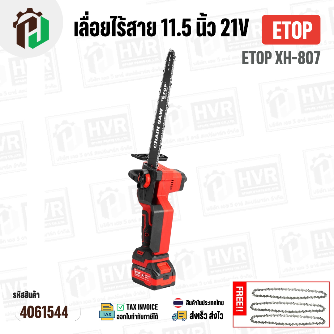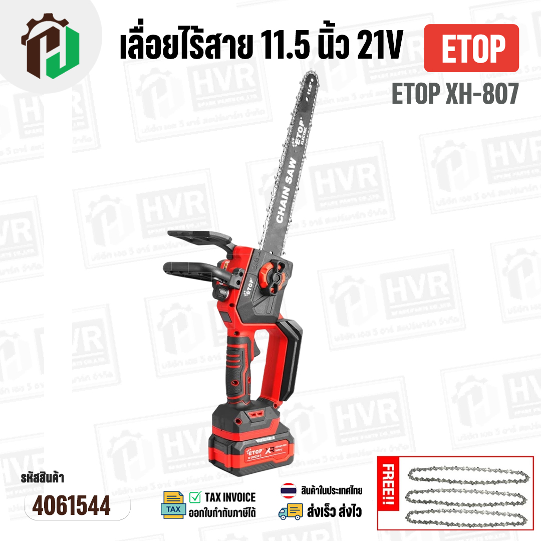 > เครื่องมือช่างขายส่ง > เลื่อยไฟฟ้า > เลื่อยไร้สาย 11.5 นิ้ว ETOP XH-807 ( 21V ) ( 1200W ) ( มอเตอร์บัสเลส ไร้แปรงถ่าน Brushless Motor )