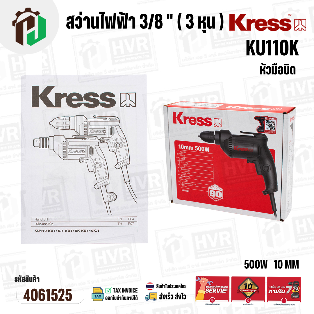 สว่านไฟฟ้า 3/8 " ( 3 หุน ) KRESS ( เครส ) รุ่น KU110K ( 500W ) ( หัวมือบิด ) #4061525