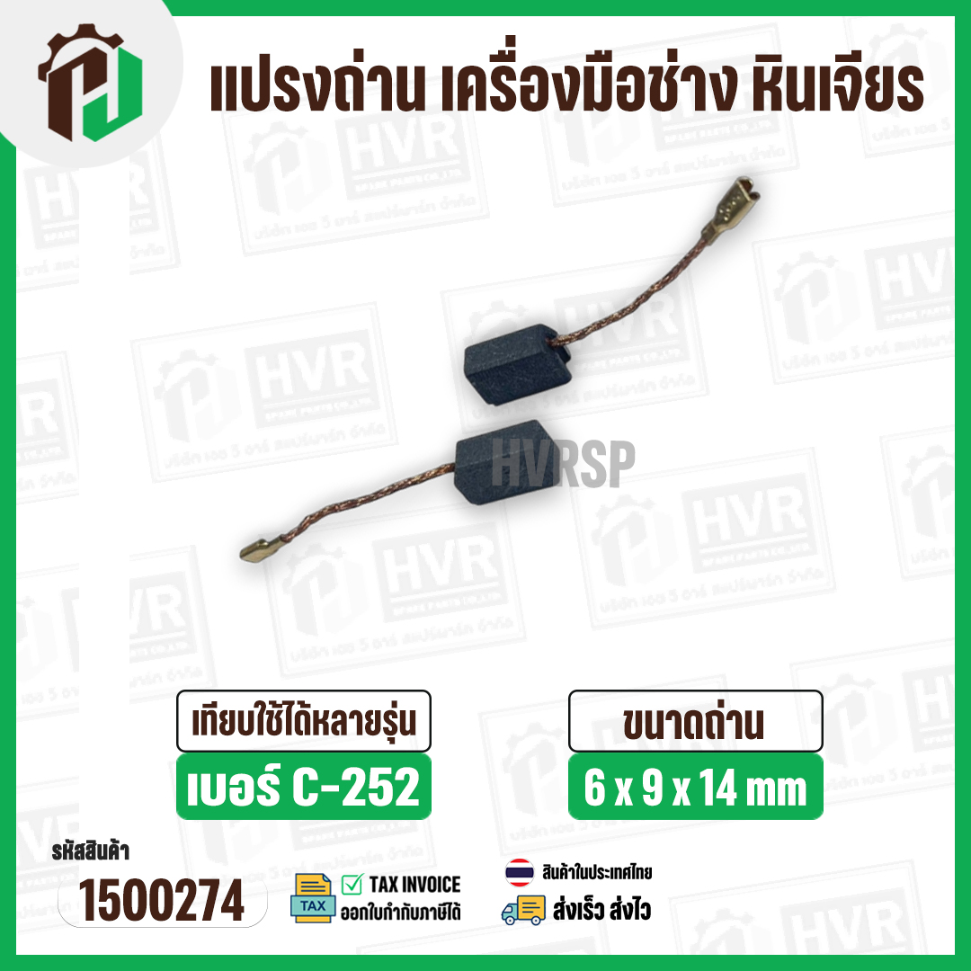 >> ใช้สำหรับเป็นอะไหล่แปรงถ่านเครื่องมือช่าง และใช้งานเครื่องมือใช้ไฟฟ้าทั่วไป>> สำหรับ เครื่องมือช่าง หินเจียร PUMPKIN ( ฟักทอง ) , จีนทั่วไป C-252 ( STAR )>> เบอร์ C-252>> ขนาดแปลงถ่าน <<>> หนา 6 mm.>> กว้าง 9 mm.>> ยาว 14 mm.