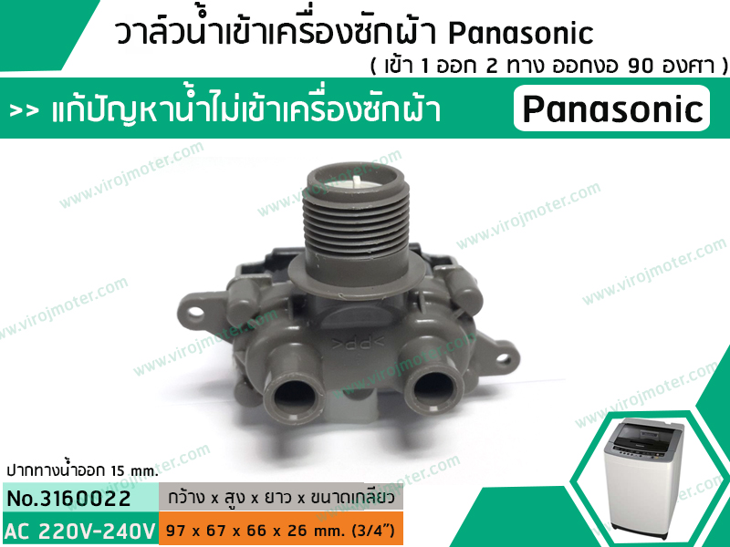 > อะไหล่เครื่องซักผ้า > วาล์วน้ำเข้า > วาล์วน้ำเข้าเครื่องซักผ้า Panasonic ( พานาโซนิค ) ( เข้า 1 ออก 2 ทาง ออกงอ 90 องศา )