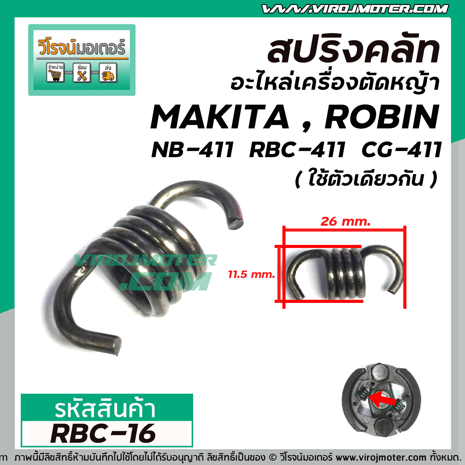 > อะไหล่เครื่องตัดหญ้า > คลัท > สปริงครัช เครื่องตัดหญ้า MAKITA , ROBIN รุ่น 411CG NB411 ( แบบอ้วน สั้น 26 mm. ) #RBC-16 ------------------------ >> รายละเอียดสินค้า << ------------------------