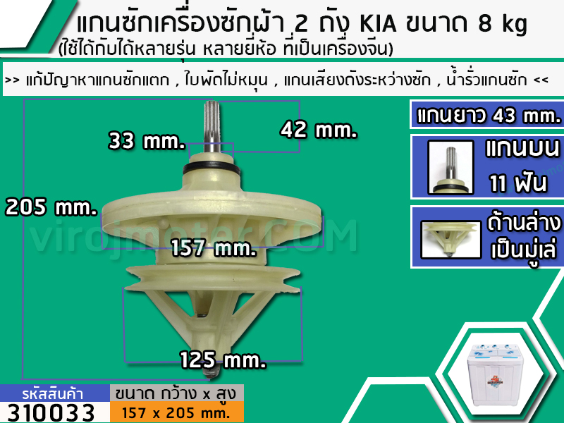 >> ขนาดเฉพาะแกนซัก กว้าง 157 mm. x สูง 205 mm.