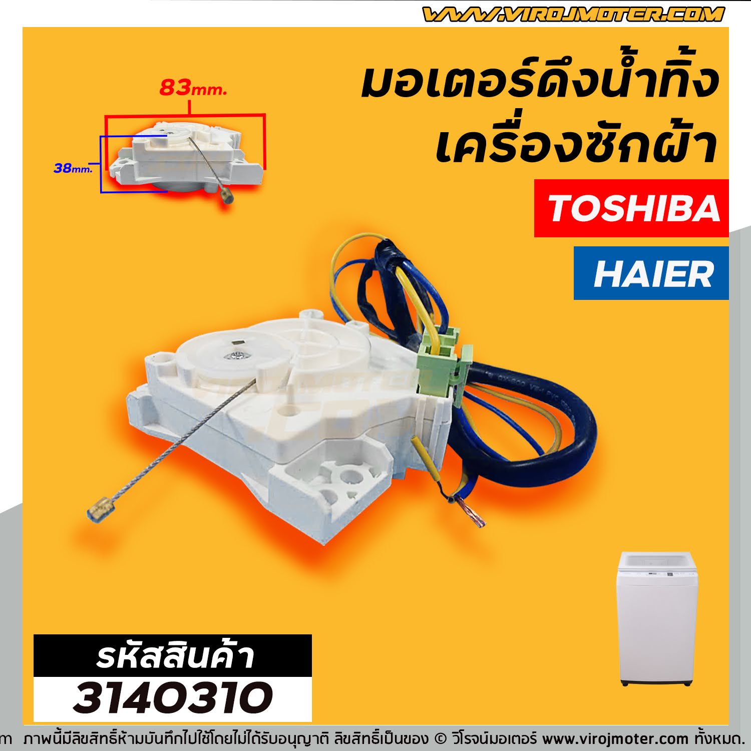 > อะไหล่เครื่องซักผ้า > มอเตอร์เดรนน้ำทิ้ง > มอเตอร์เดรนน้ำทิ้งเครื่องซักผ้า Toshiba ( โตชิบ้า ) , Haier ( ไฮเออร์ ) #มอเตอร์ดึงน้ำทิ้ง ( ตัวเทียบ ) #3140310 ---------------------------------- >> รายละเอียดสินค้า << ---------------------------------------