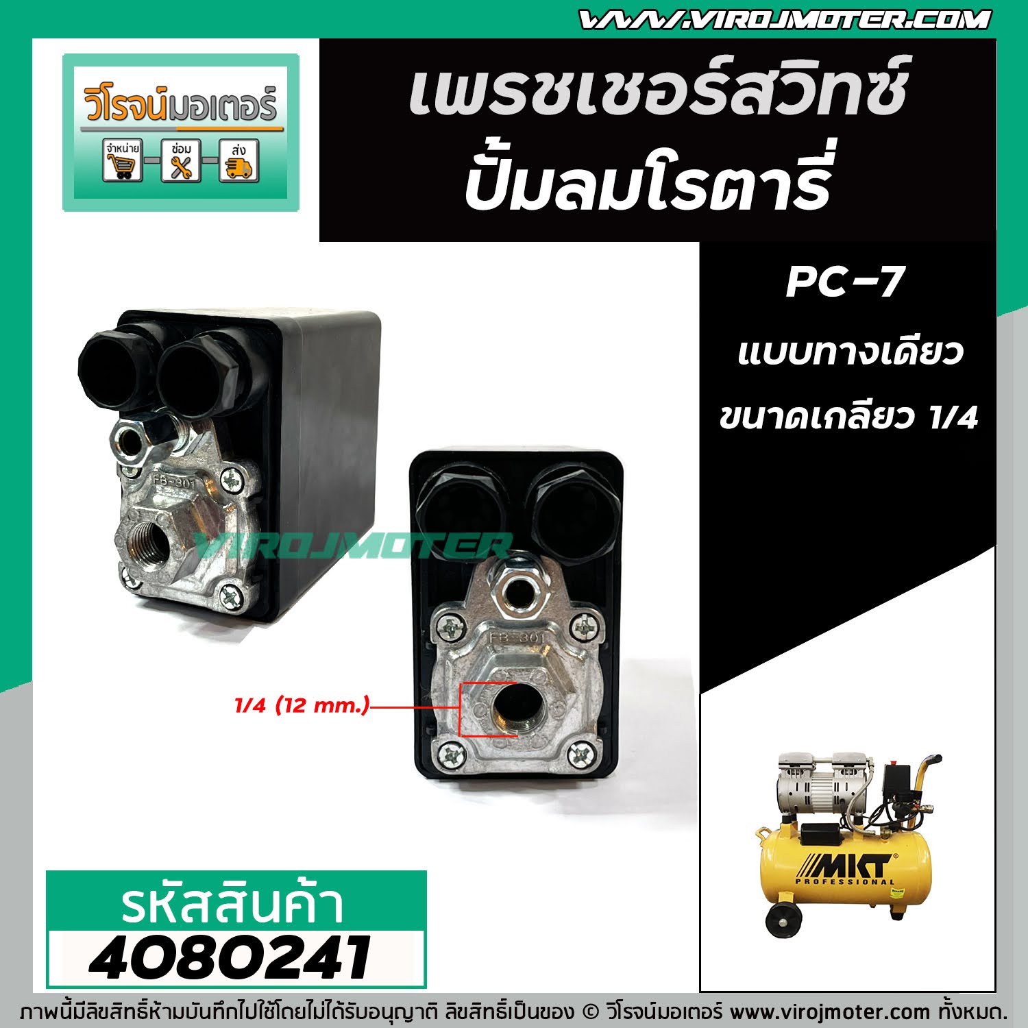 > อะไหล่ปั้มลม > สวิทซ์ปั้มลม > สวิทซ์ปั้มลมโรตารี่ 25L ,30L , 50L #Hiton #PC-7 ( เกลียวทางเดียว เกลียวใน 1/4" ( 12 mm. ) ) #4080241 ---------------------------------- >> รายละเอียดสินค้า << ---------------------------------------