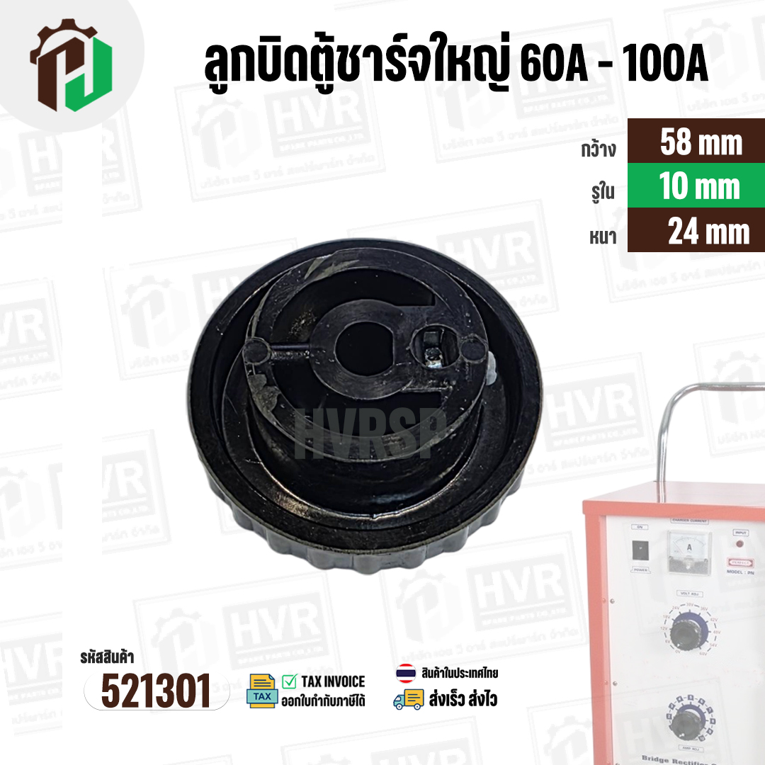 > อะไหล่เครื่องเชื่อม > ลูกบิด > ลูกบิดตู้ชาร์ทใหญ่ 60A-100A ลูกบิดตู้ชาร์จแบตเตอร์รี่ หม้อเพิ่มไฟ ( กลมดำใหญ่ ) ( 58 mm. รู 10 mm. หนา 24 mm. )