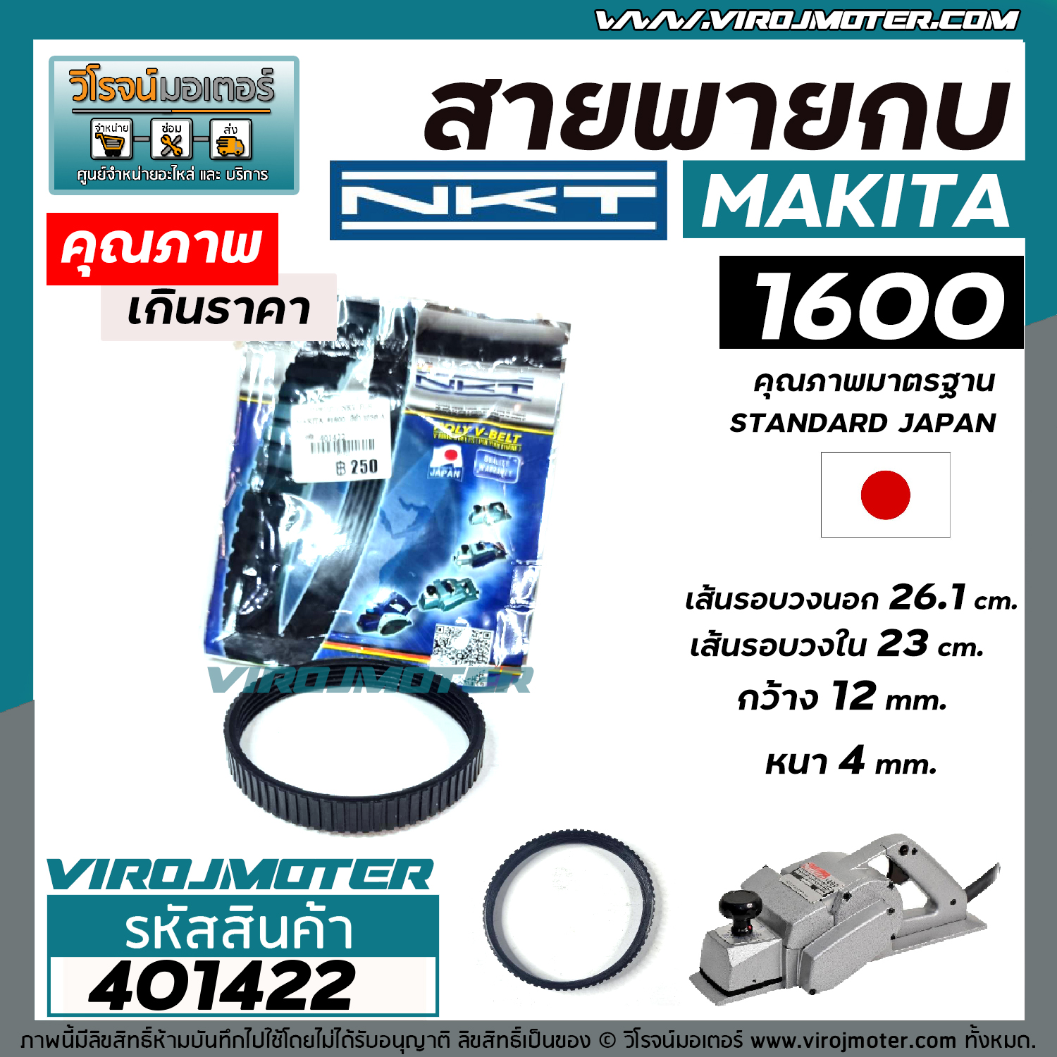 > อะไหล่เครื่องมือช่าง > สายพานกบ > สายพานกบ NKT FOR MAKITA ( มากิต้า ) #1600 สีดำ เกรด A คุณภาพมาตราฐาน JAPAN ( ญี่ปุ่น ) #401422 ---------------------------------- >> รายละเอียดสินค้า << ---------------------------------------