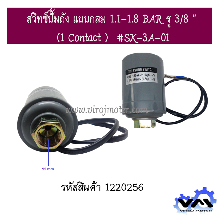 สวิทซ์ปั้มถัง แบบกลม 1.1-1.8 BAR รู 3/8 " (1 Contact ) #SK-3A-01