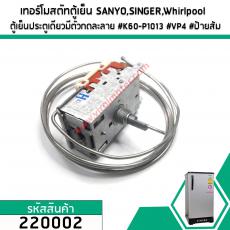 > อะไหล่ตู้เย็น,ตู้แช่ > เทอร์โมสตัท ตู้เย็น > เทอร์โมสตัทตู้เย็น SANYO (ซันโย),SINGER ,Whirlpool ตู้เย็นประตูเดียวมีตัวกดละลาย #K60-P1013 #VP4 #ป้ายส้ม #220002 >> ใช้สำหรับเป็นอะไหล่ควบคุมอุณหภูมิตู้เย็น