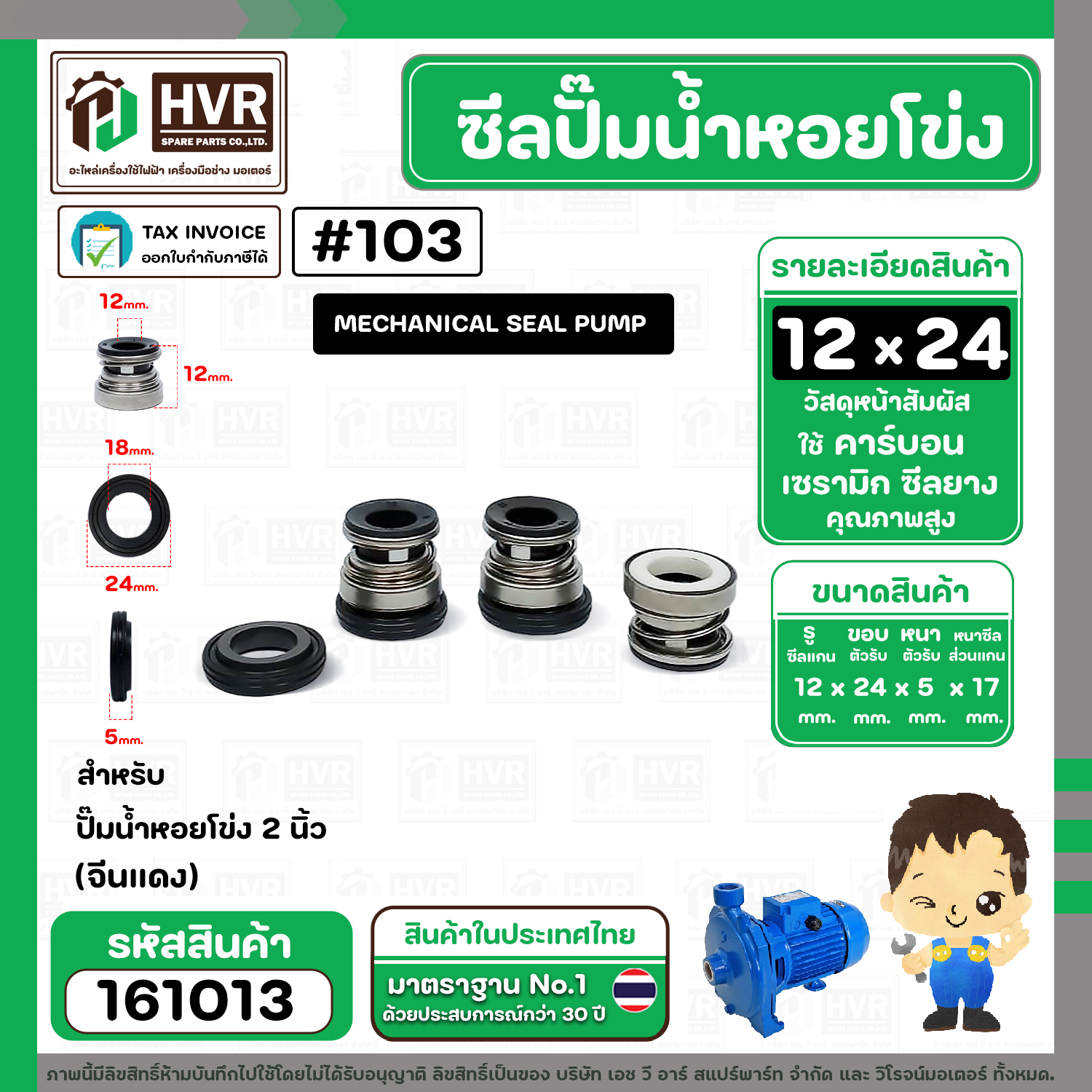 > อะไหล่ปั้มน้ำไฟฟ้า > ซีลปั้มน้ำ > ซีลปั้มน้ำหอยโข่ง 2 นิ้ว ( จีนแดง ) #14 x 30 mm. ( แมคคานิคอล ซีล) #103 #SM104