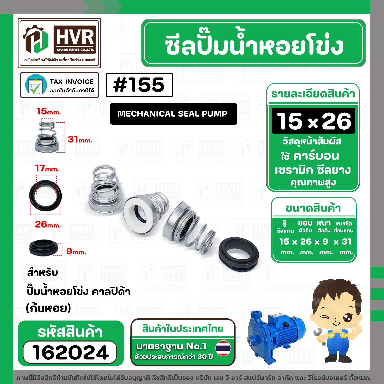 > อะไหล่ปั้มน้ำไฟฟ้า > ซีลปั้มน้ำ > ซีลปั๊มน้ำหอยโข่ง คาลปีด้า ( ก้นหอย ) #15 x 26 mm. ( แมคคานิคอล ซีล) #155 (ราคา / 1 ชุด) #162024