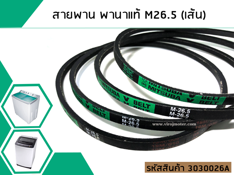 > อะไหล่เครื่องซักผ้า > สายพานเครื่องซักผ้า > สายพาน สำหรับ เครื่องซักผ้า Panasonic 2 ถัง #M26.5 สายพาน พานาแท้ M26.5 (เส้น)