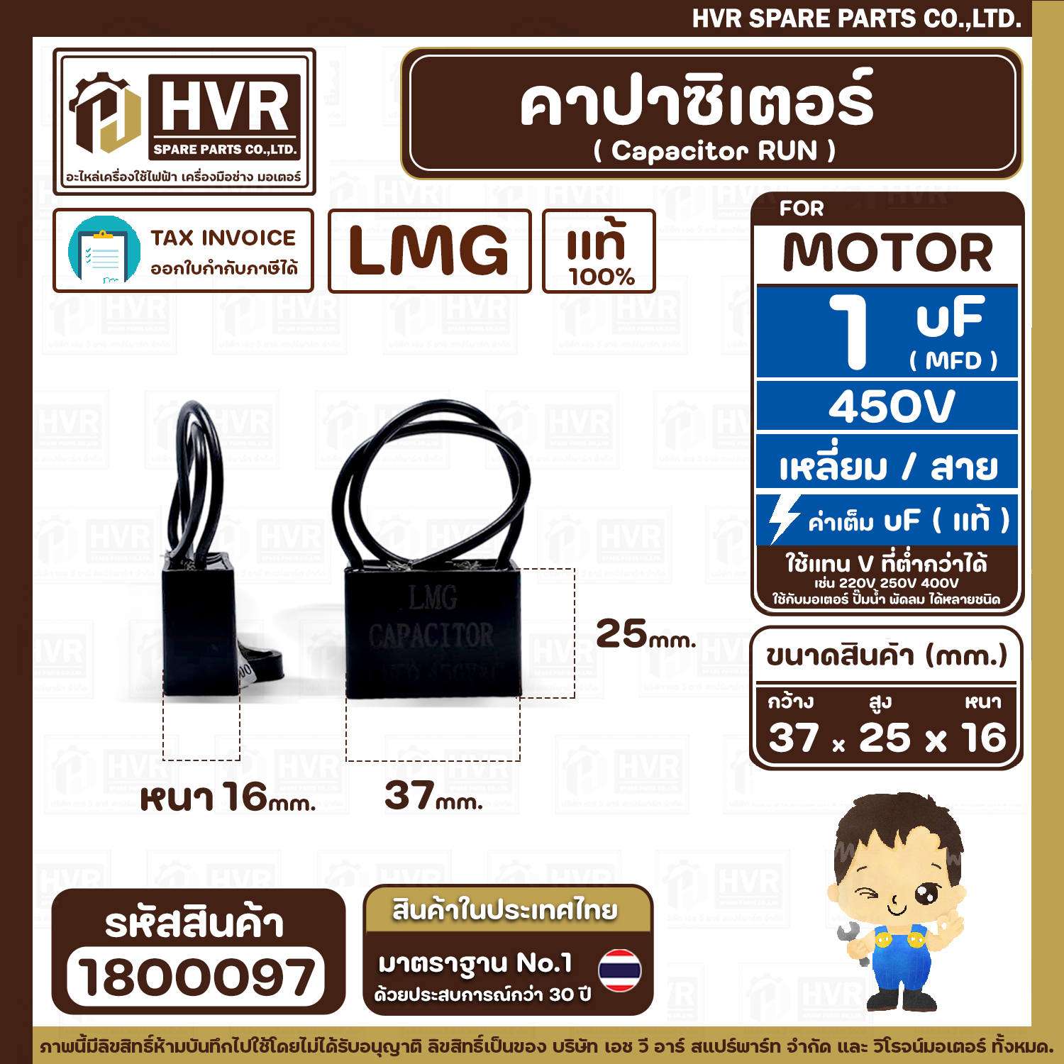 คาปาซิเตอร์ ( Cap Run ) 1 uF 450V ( เหลี่ยม สาย ) ( LMG ) ( 25 x 37 x 16 mm.) #1800097