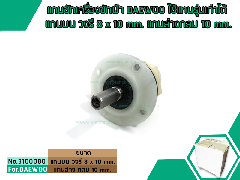 > อะไหล่เครื่องซักผ้า > แกนซักเครื่อง 2 ถัง > แกนซักเครื่องซักผ้า DAEWOO ใช้แทนรุ่นเก่าได้ แกนบน วงรี 8 x10 mm. แกนลางกลม 10 mm. -รายระเอียด
