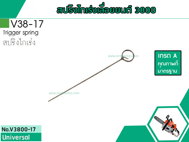 สปริงไกเร่งเลื่อยยนต์รุ่น 3800 >> ใช้สำหรับเป็นอะไหล่ซ่อมเลื่อยยนต์ >> สำหรับรุ่น 3800 >> รหัสสินค้า V38-17 >> คุณภาพดีเกรด A #สปริงไกเร่ง #สปริงไกเร่ง3800 #สปริงไกเร่งเลื่อยยนต์ #อะไหล่เลื่อยยนต์