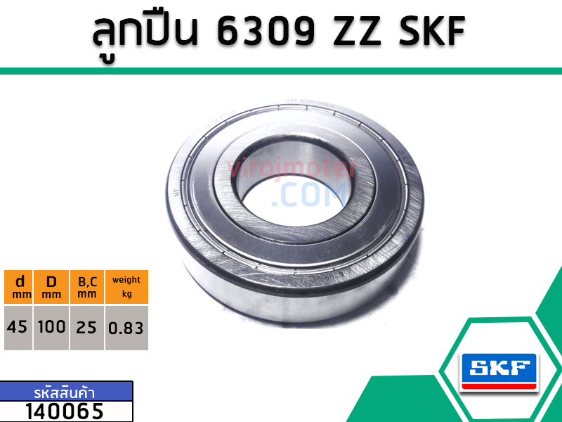 >>รหัสสินค้า 140065 >> รู 45 mm. >>เส้นผ่านศูนย์กลาง 100 mm. >>หนา 25 mm. >>น้ำหนัก 0.83 kg. #ตลับลูกปืนเบอร์6309 #ลูกปืน6309 #ลูกปืน6309 ZZ #ลูกปืนยี่ห้อSKF ZZ 6309 #Bearing6309
