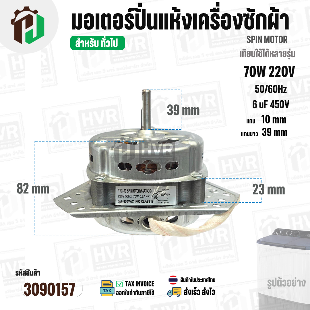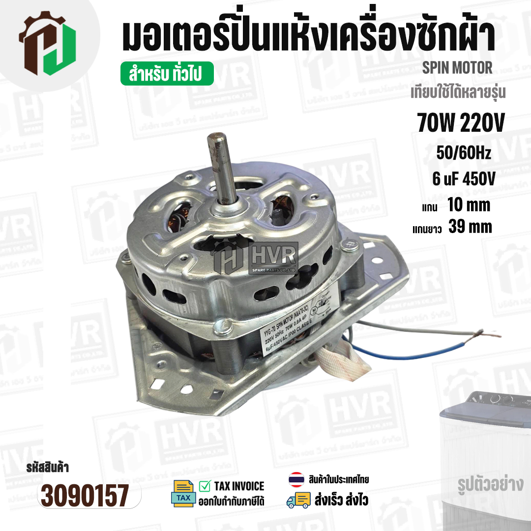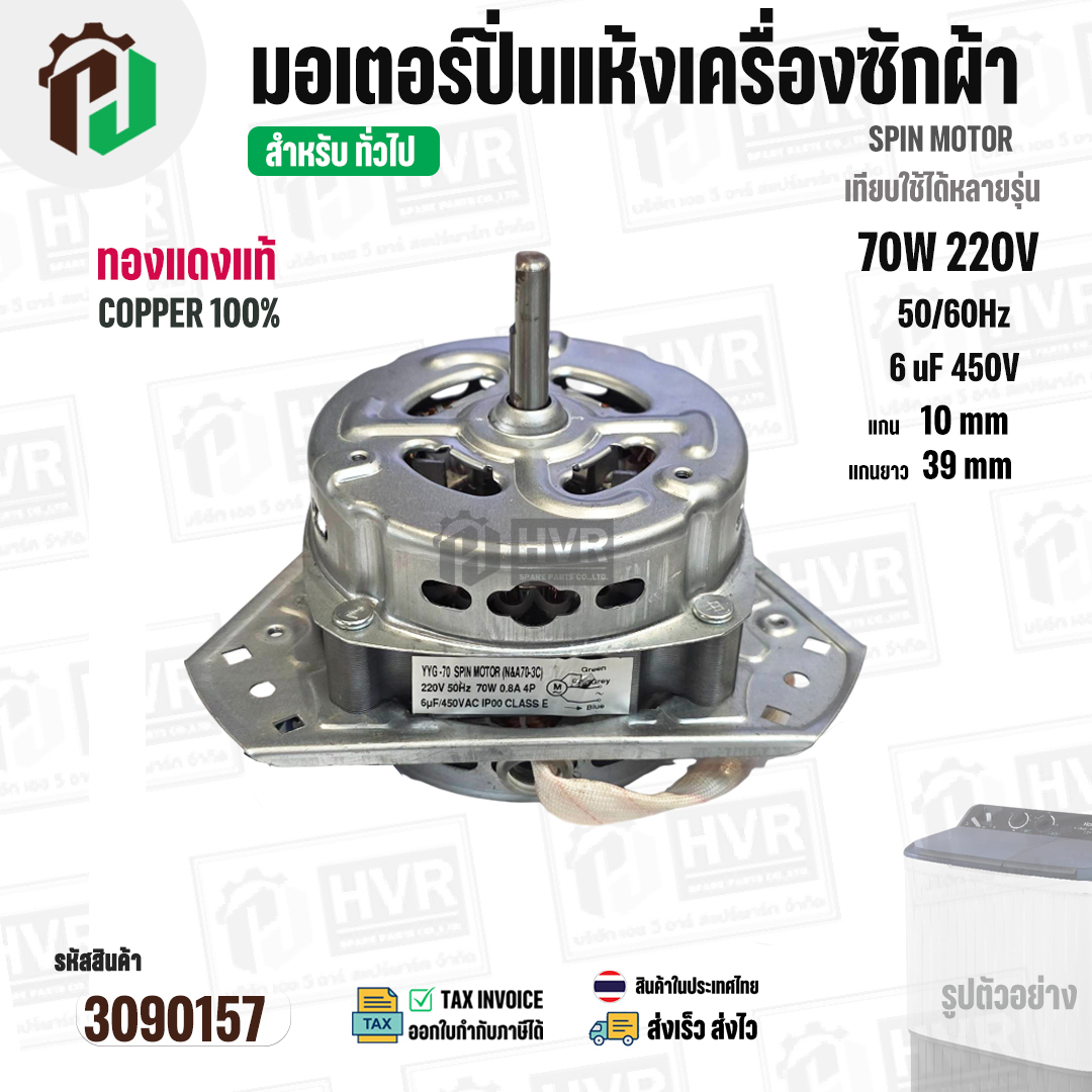 > อะไหล่เครื่องซักผ้า > มอเตอร์เครื่องซักผ้า > มอเตอร์ปั่นแห้งเครื่องซักผ้า 3 ปีก 70W แกน 10 mm แกนยาว 39 mm Cap 6 uf ( YYG-70 ) ( ทองแดงแท้ 100% )