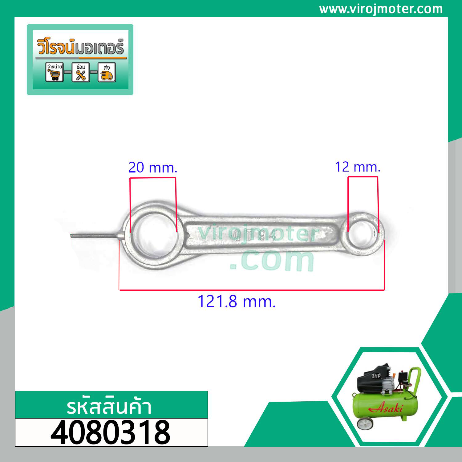 > อะไหล่ปั้มลม > ก้านสูบปั้มลม > ก้านสูบปั้มลม โรตารี่จีนทั่วไป 50L #Asaki , ETOP , BELARA , JET, POLO , BONCHI , Malio เป็นต้น #4080318 ------------------- >> รายละเอียดสินค้า << -----------------------