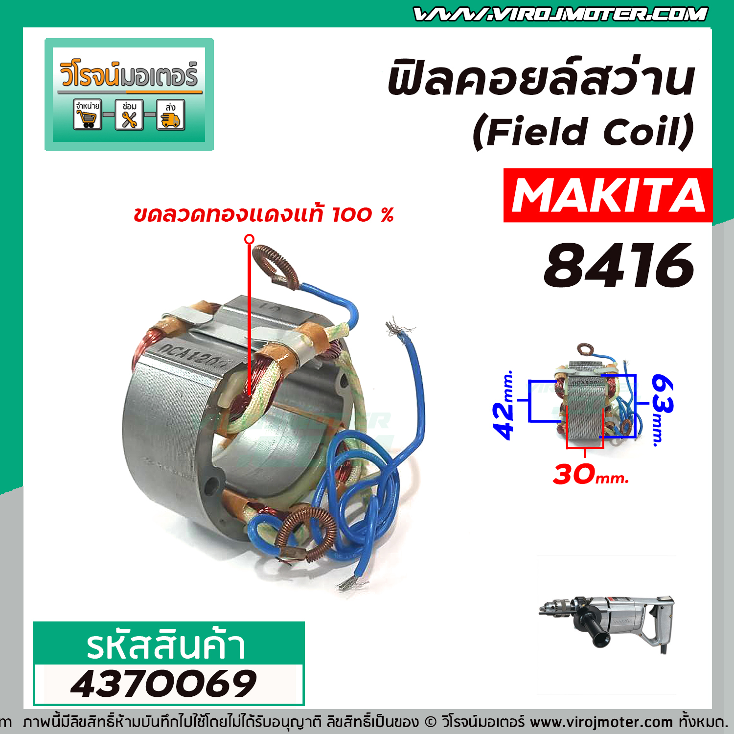 > อะไหล่เครื่องมือช่าง > ฟิลคอยล์ > ฟิลคอยล์สว่าน (Field Coil) MAKITA รุ่น 8416 ( ฟิลคอยล์ คุณภาพสูง ใช้ลวดทองแดงแท้ 100% ) #4370069 ---------------------- >> รายละเอียดสินค้า << ------------------------