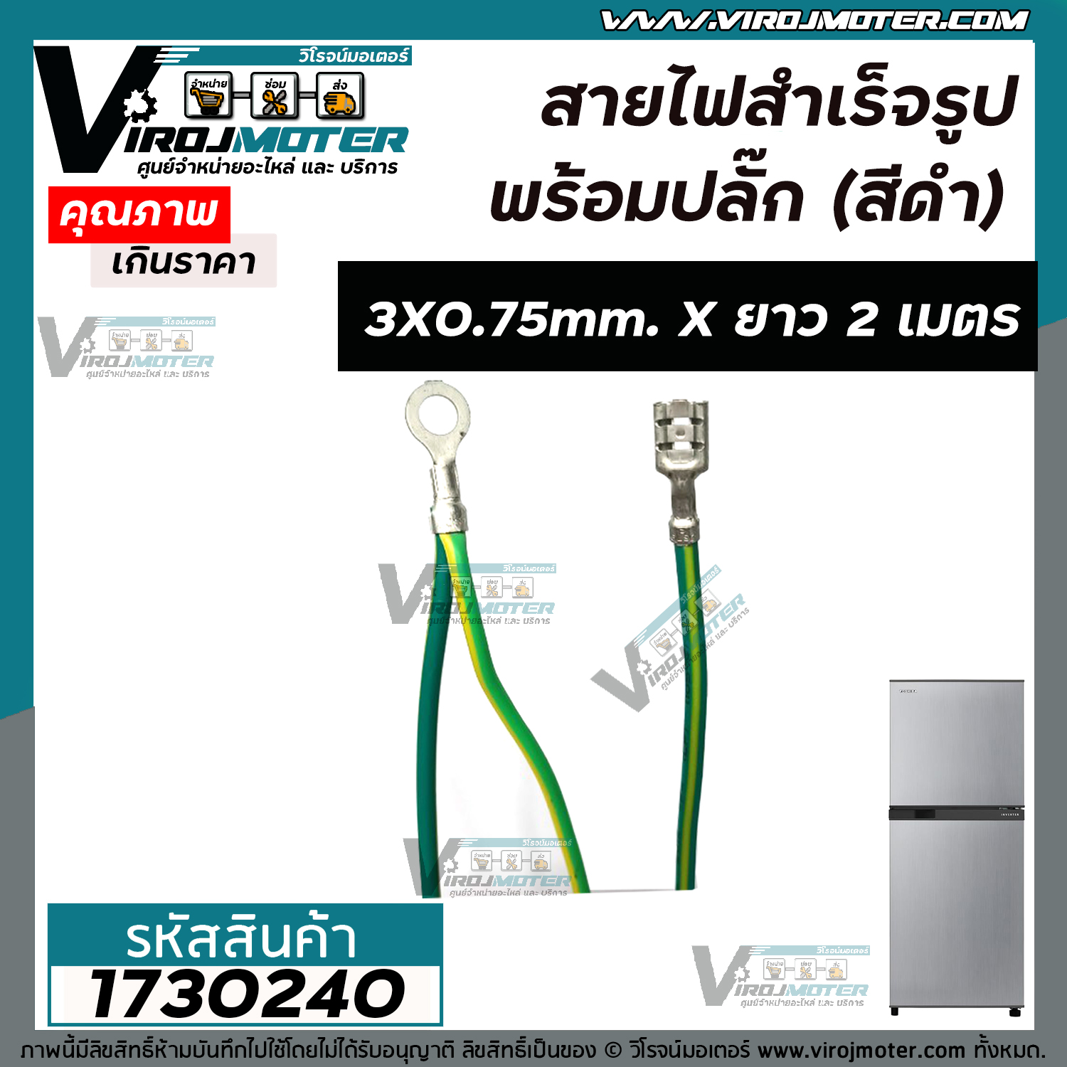 > อะไหล่เครื่องซักผ้า > สายไฟ AC > สายไฟสำเร็จรูป สำหรับ สายไฟเครื่องซักผ้า สายไฟตู้เย็น และ สายไฟเครื่องใช้ไฟฟ้าทั่วไป พร้อมปลั๊ก ( สีดำ ) VCT 3 x 0.75 mm ---------------------------------- >> รายละเอียดสินค้า << ---------------------------------------