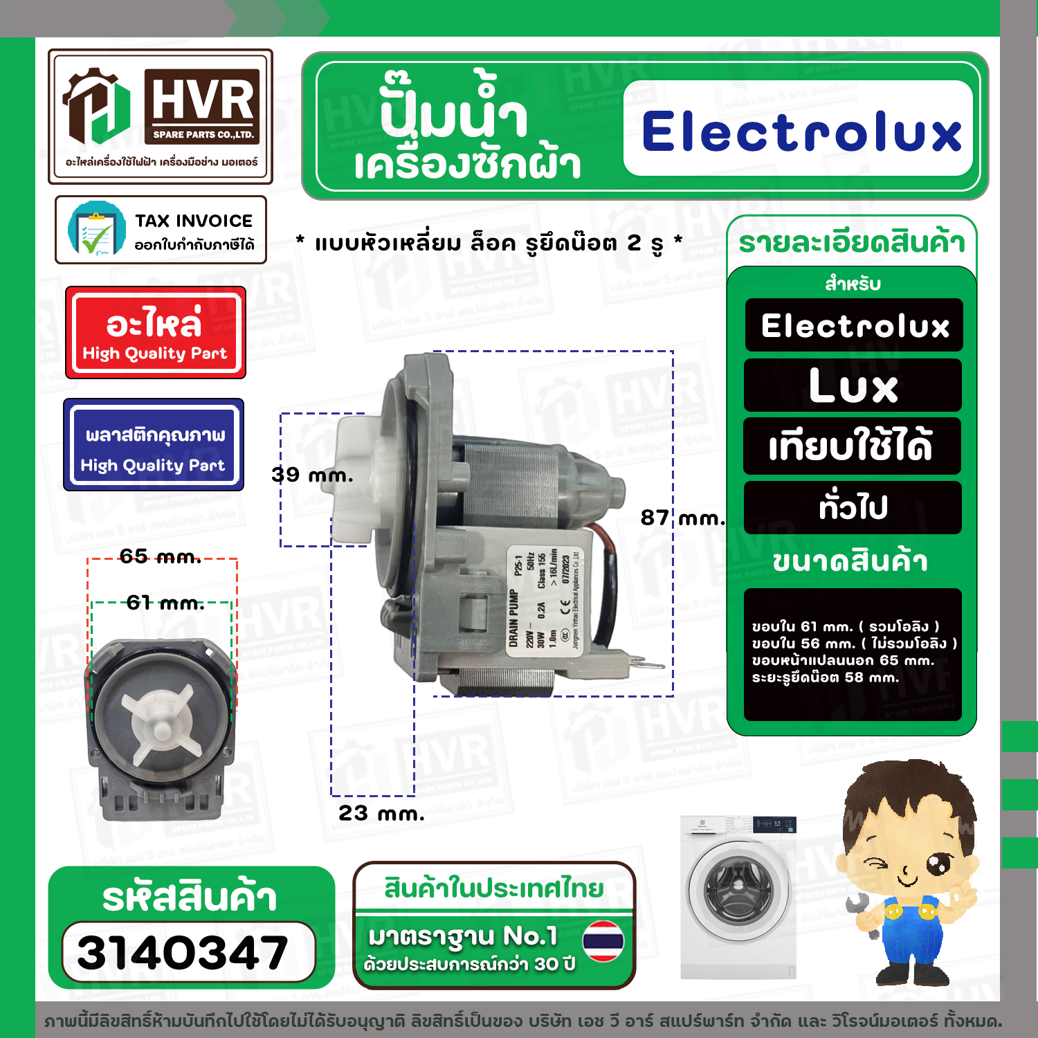 ปั๊มน้ำเครื่องซักผ้าฝาหน้า Electrolux , Lux , ทั่วไป แบบล็อค ใบหนา ตัวเหลี่ยม 30W 0.2A 220V P25-1 ( ขอบในรวมโอลิง 61 mm. หน้าแปลน 65 mm.)