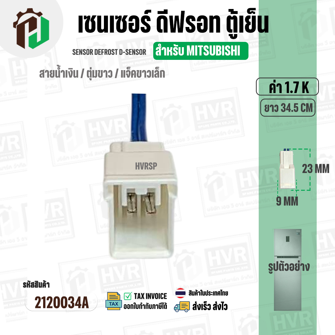 เซนเซอร์ตู้เย็น สำหรับ MITSUBISHI 1.7 k ( สายน้ำเงิน / ตุ่มขาว / แจ็คขาวเล็ก ) ( ยาว 34.5 cm. ) #2120034A