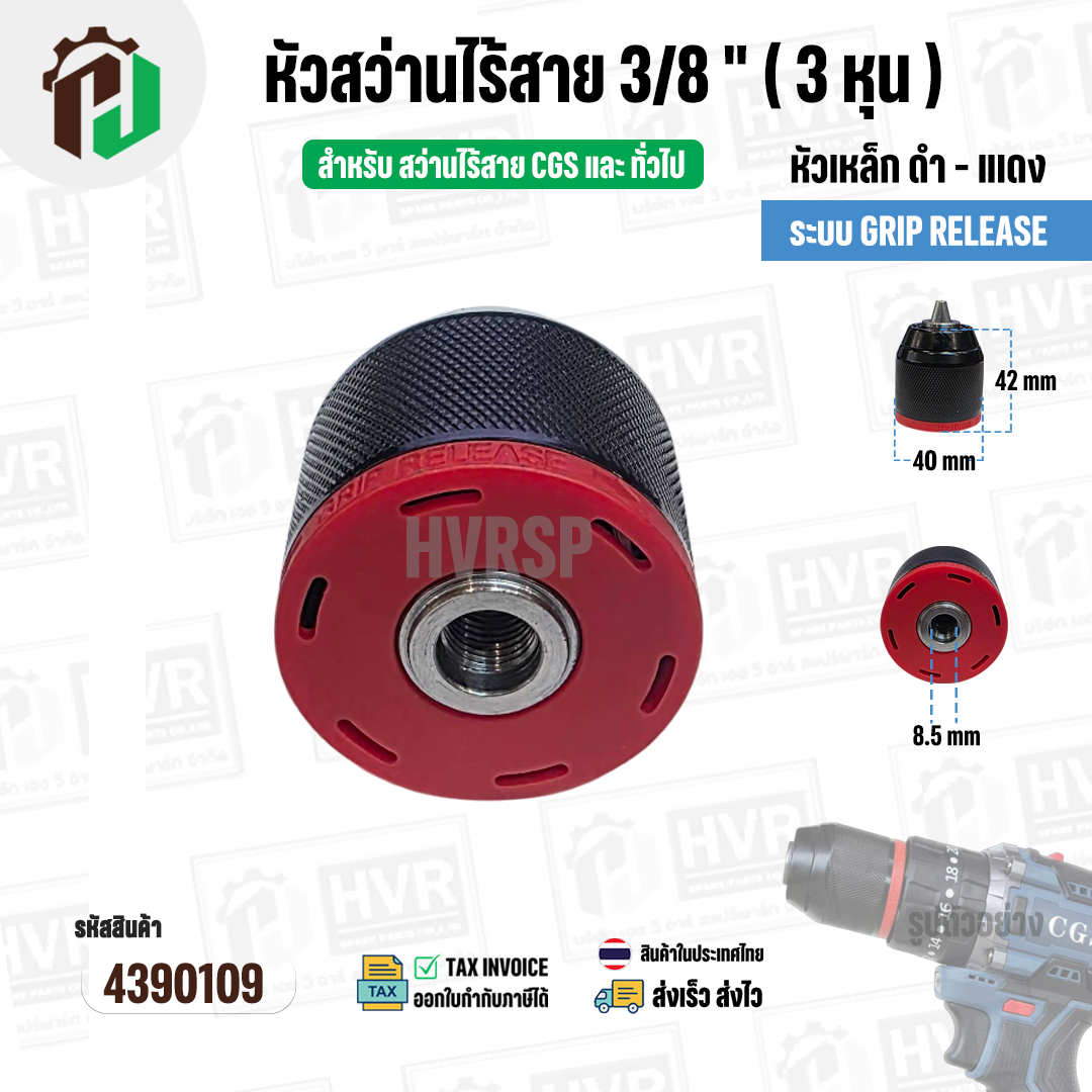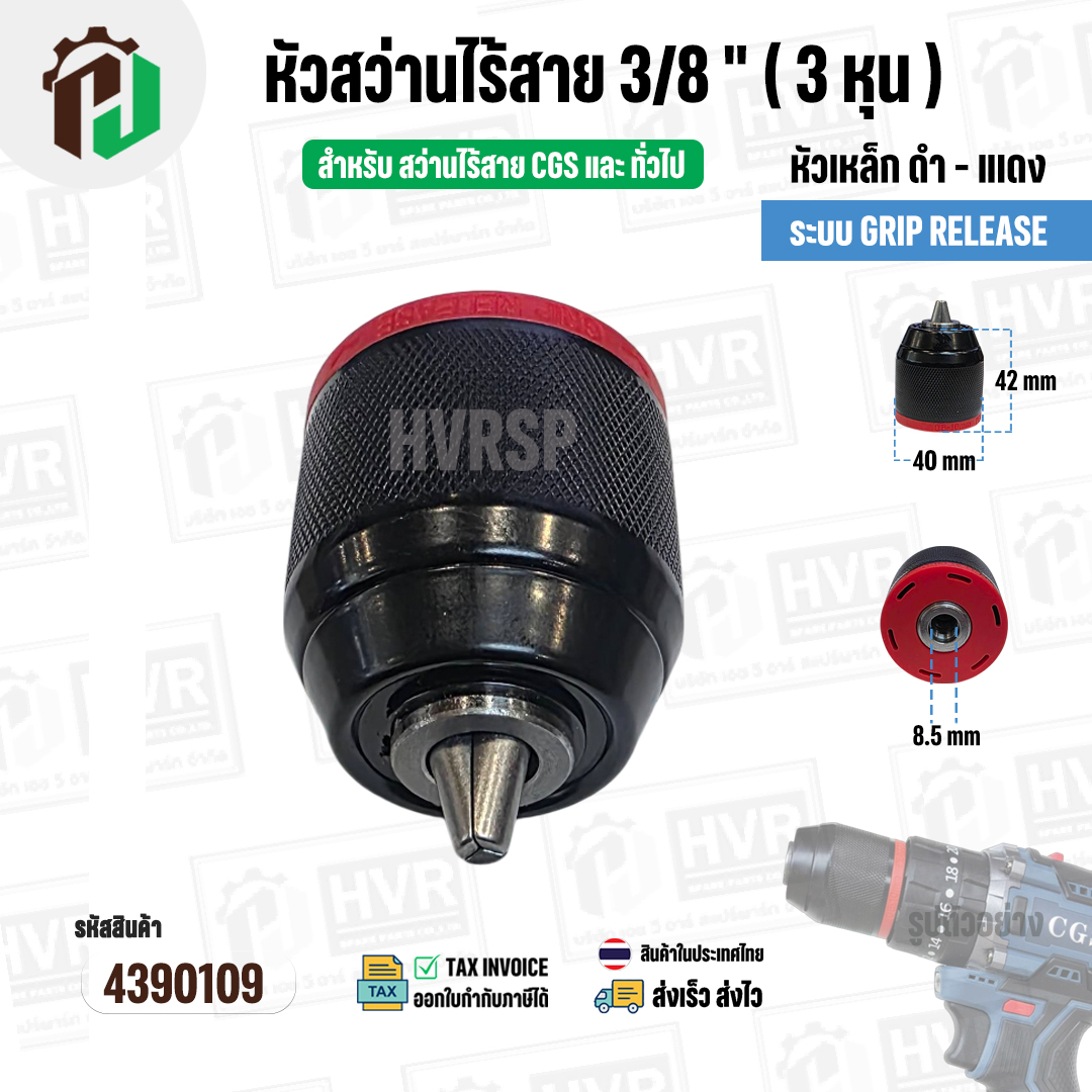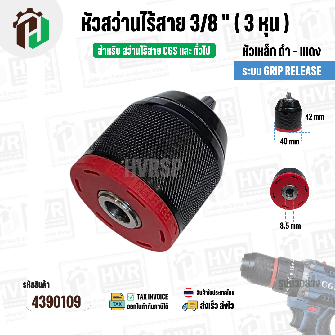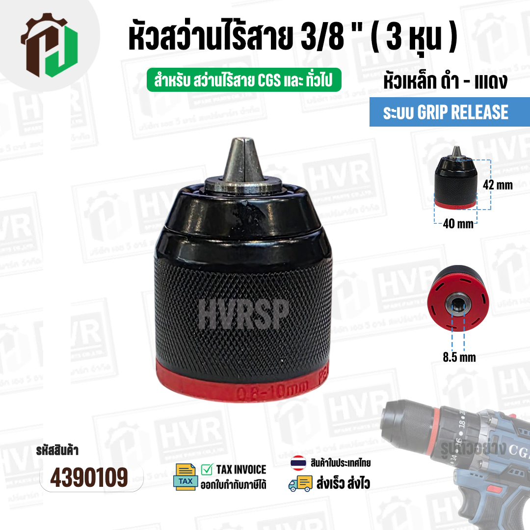 > อะไหล่เครื่องมือช่าง > หัวสว่าน , แกนเฟือง > หัวสว่านไร้สาย Osuka , CGS ,ทั่วไป ขนาด 3/8 " ( หัวเหล็ก ) รูเกลียว 8.5 mm. ( 0.8-10 mm. ) (3/8-24UNF ) ( ดำ - แดง )