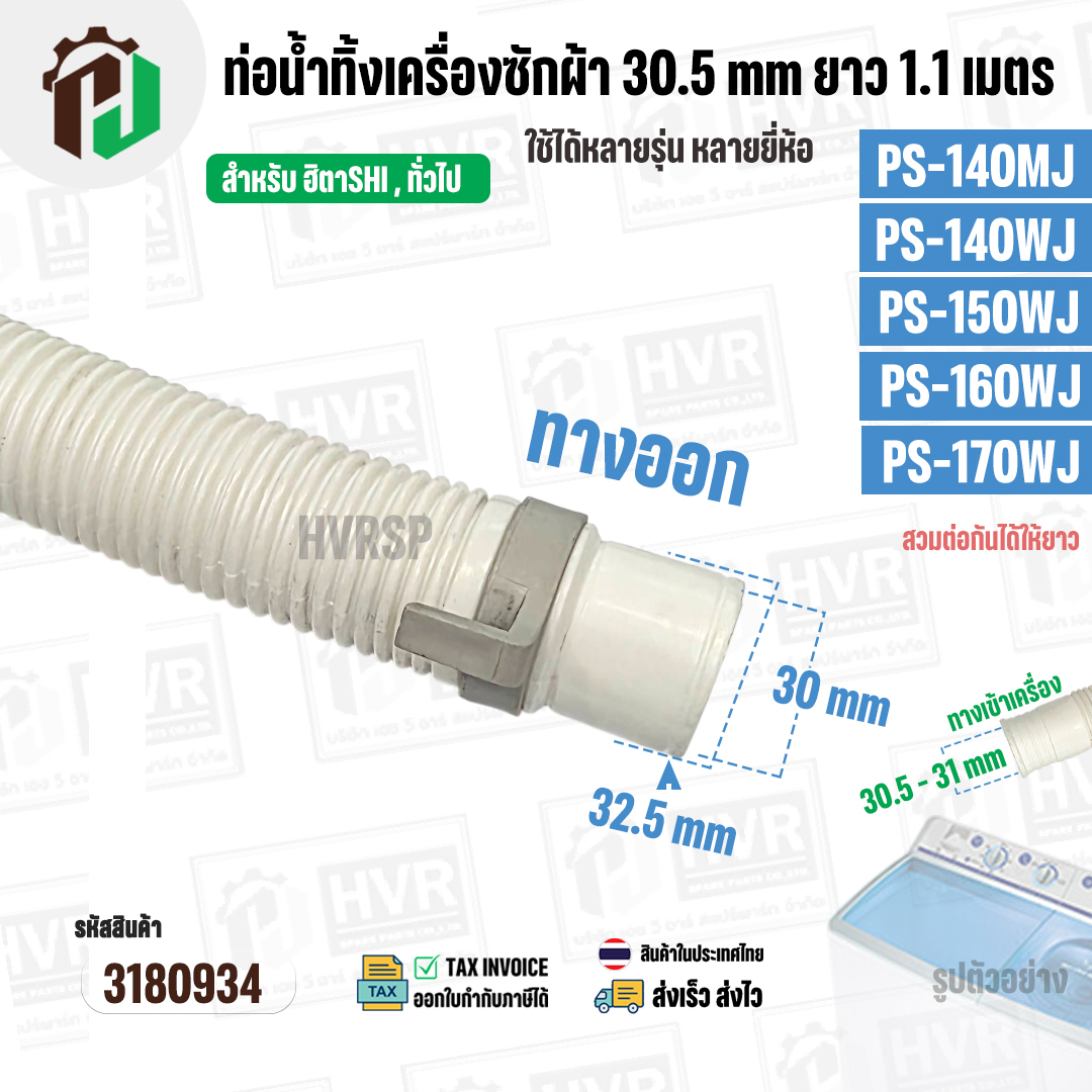 ท่อน้ำทิ้งเครื่องซักผ้า HITAชิ PS-140MJ , PS-140WJ , PS-150WJ , PS-160WJ , PS-170WJ ( ปากท่อ 30.5-31 mm ยาว 1.1 เมตร ) #3180934