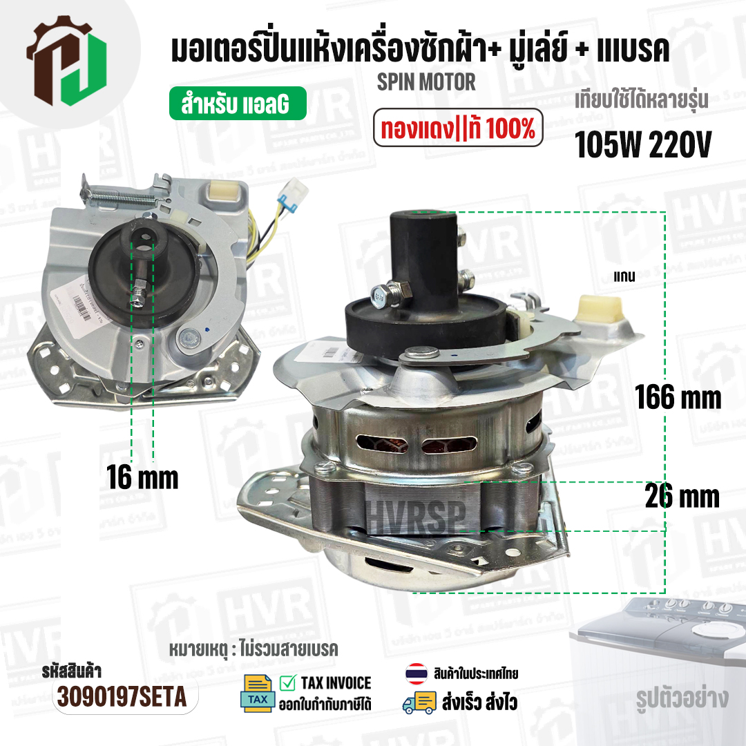 มอเตอร์ปั่นแห้งเครื่องซักผ้า LG ( แอลจี ) + มู่เลย์ยึดแกน + จานเบรค สำหรับ 9.5 - 14 KG ( 105W 220V / 8 uF 450V ( ทองแดงแท้ ) #3090197SETA