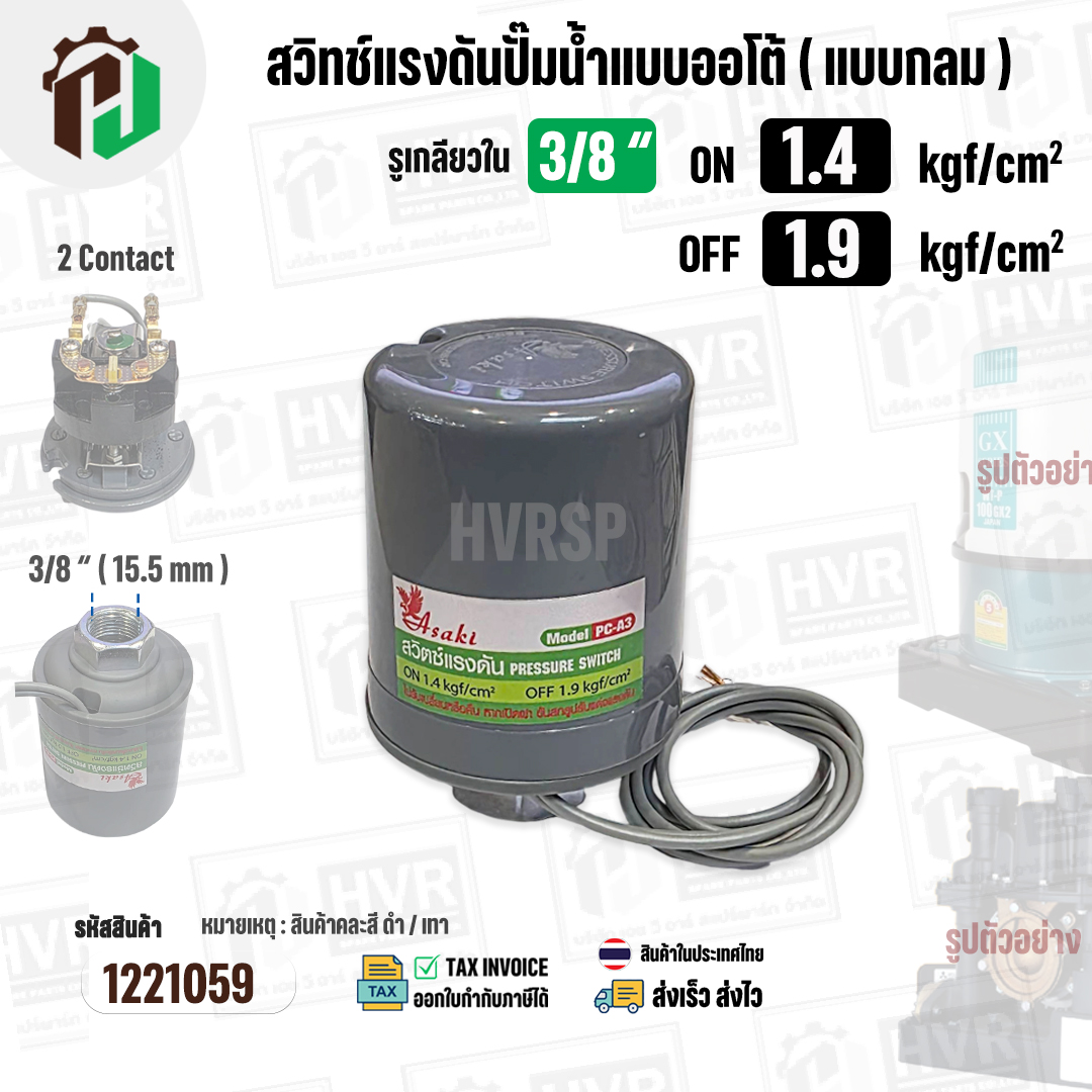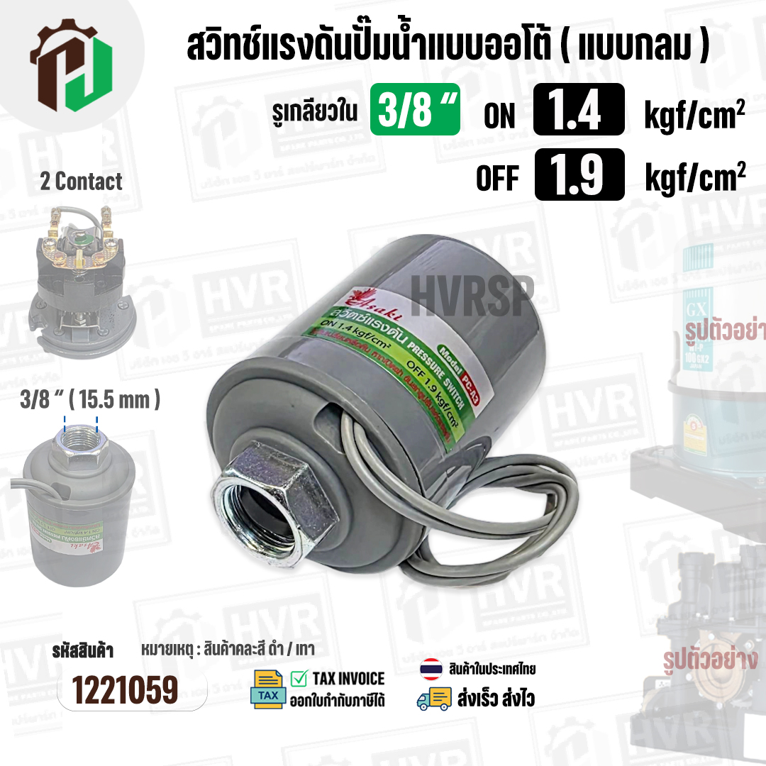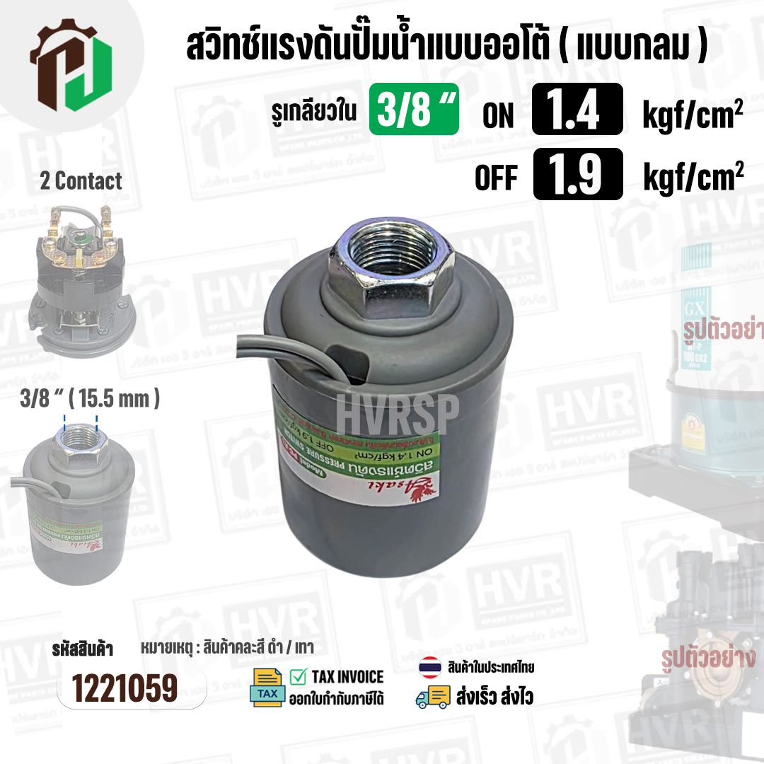 สวิทซ์ปั๊มน้ำออโต้ ( แบบกลม ) ON 1.4 kgf/cm2 / OFF 1.9 kgf/cm2 รูเกลียวใน 3/8" ( 2 Contact ) #1221059