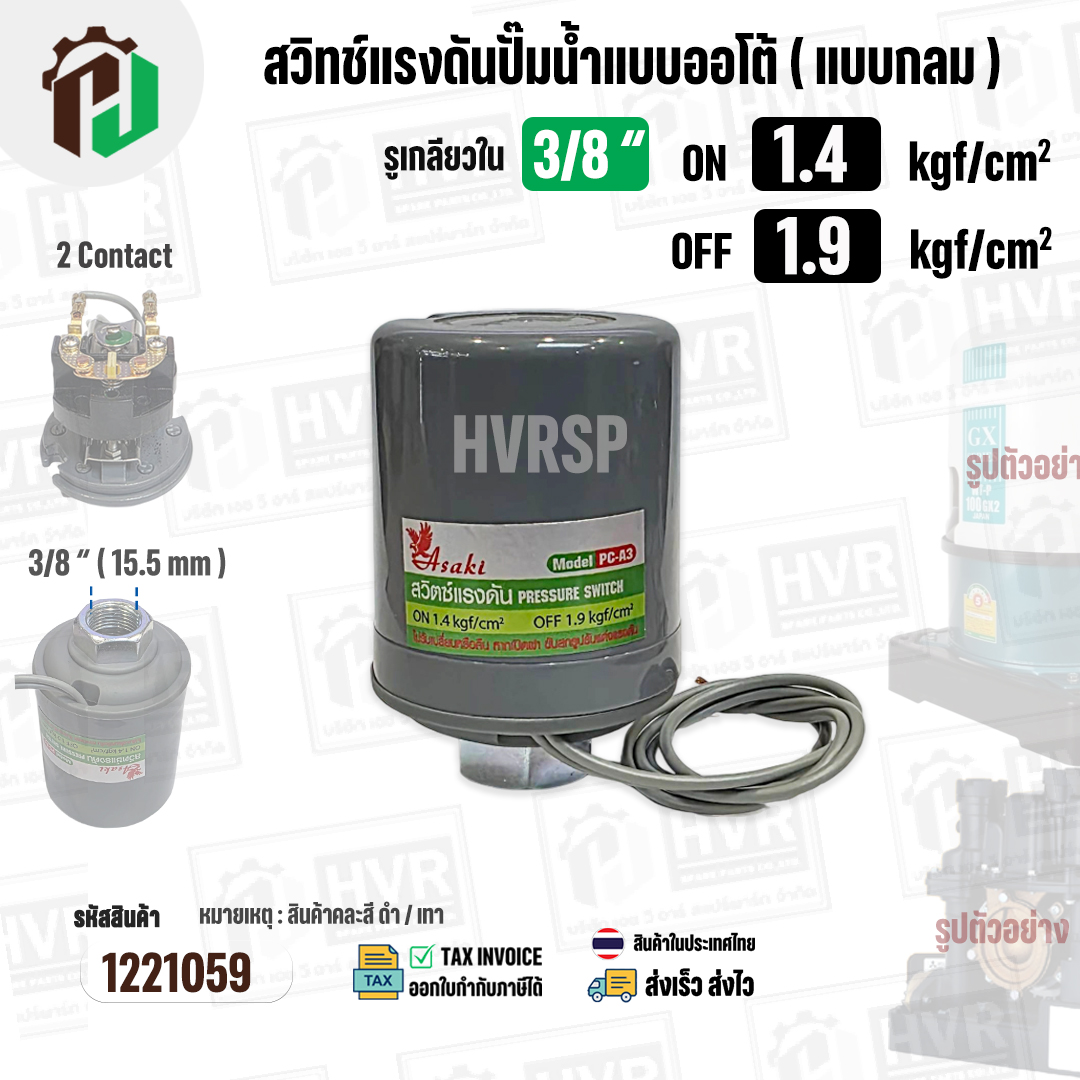 > อะไหล่ปั้มน้ำไฟฟ้า > สวิทซ์ปั้มน้ำ > สวิทซ์ปั๊มน้ำออโต้ ( แบบกลม ) ON 1.4 kgf/cm2 / OFF 1.9 kgf/cm2 รูเกลียวใน 3/8" ( 2 Contact )