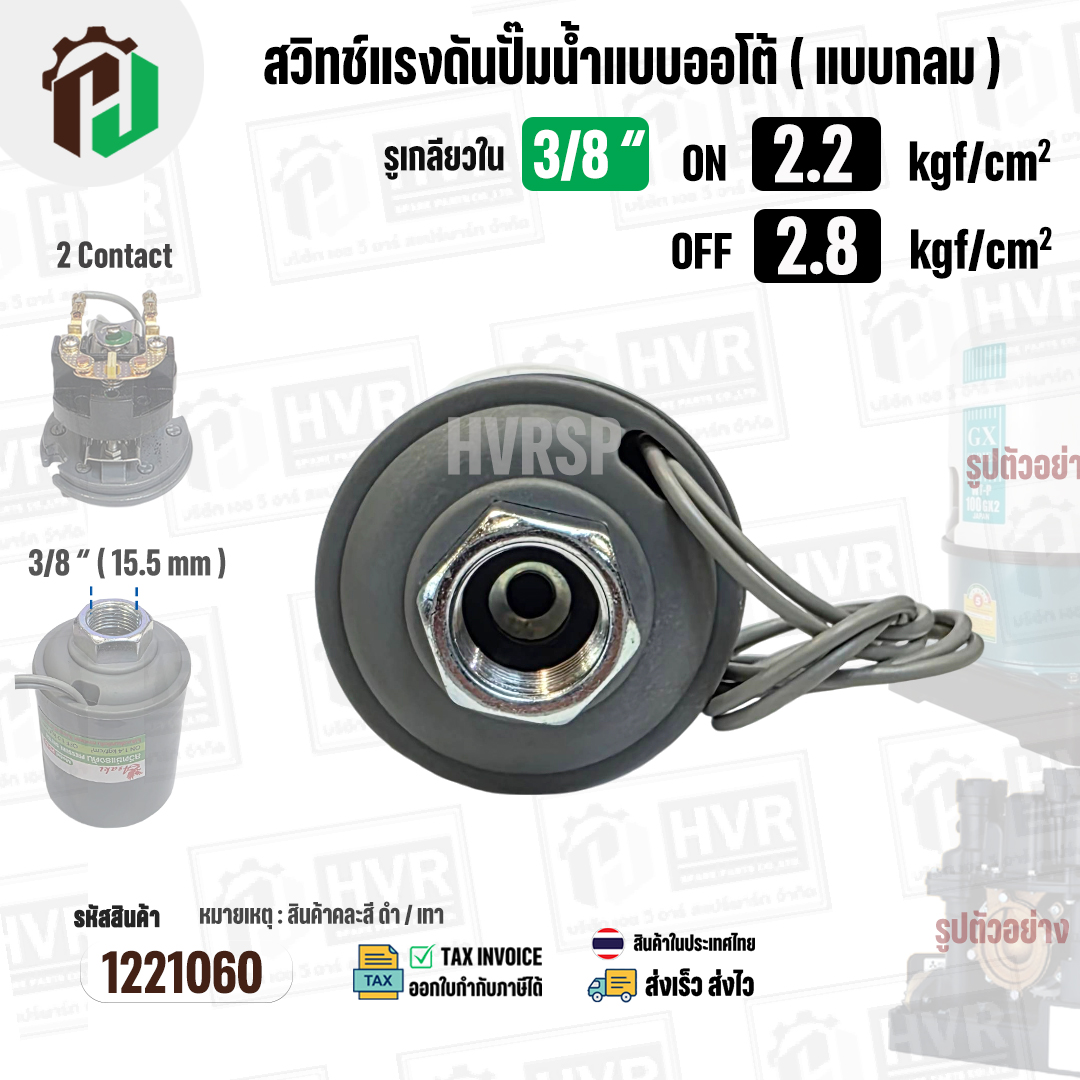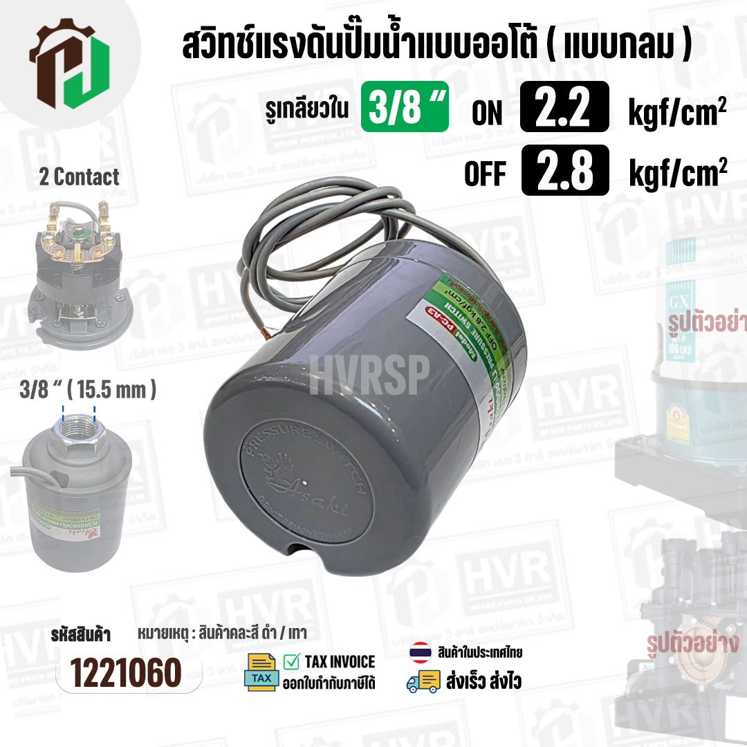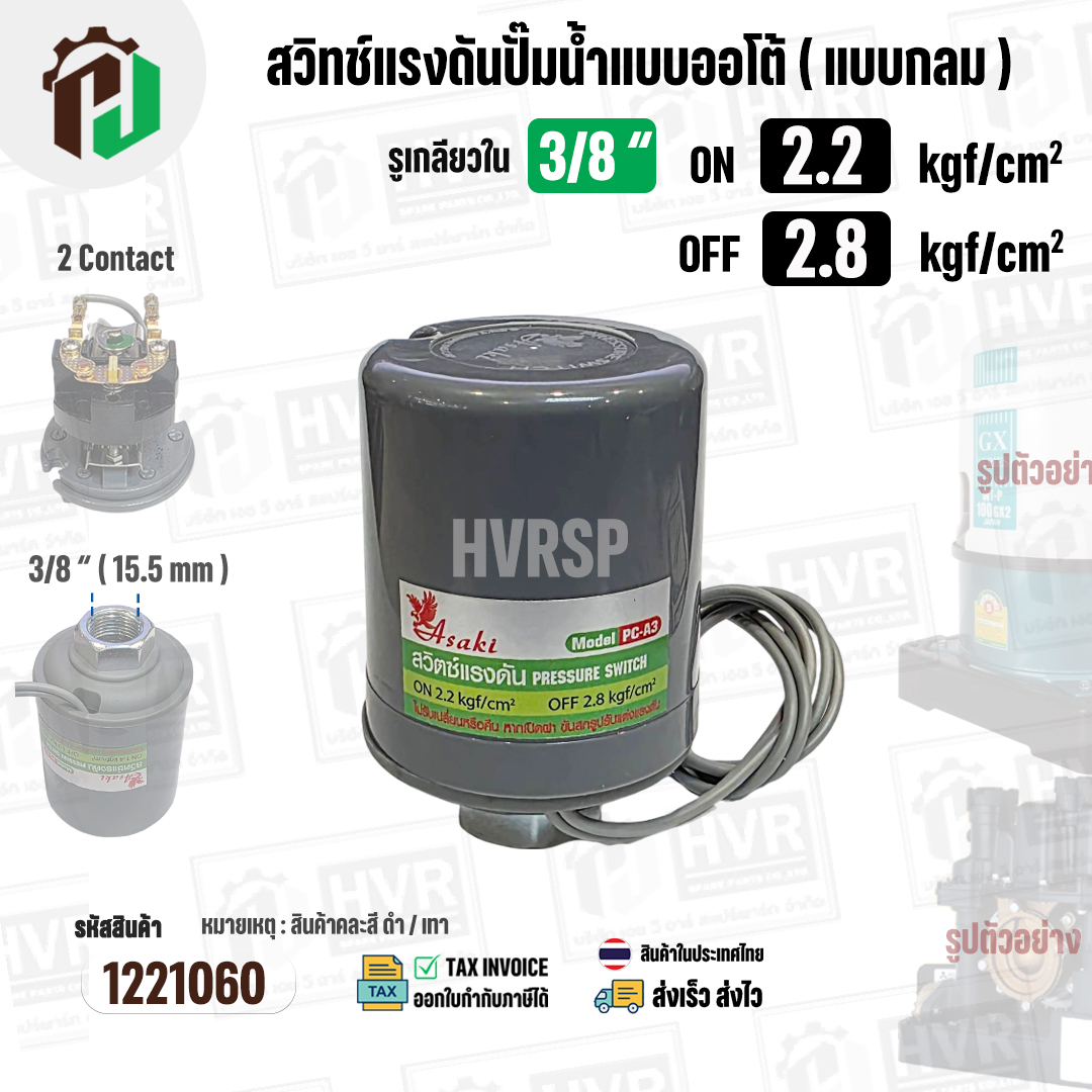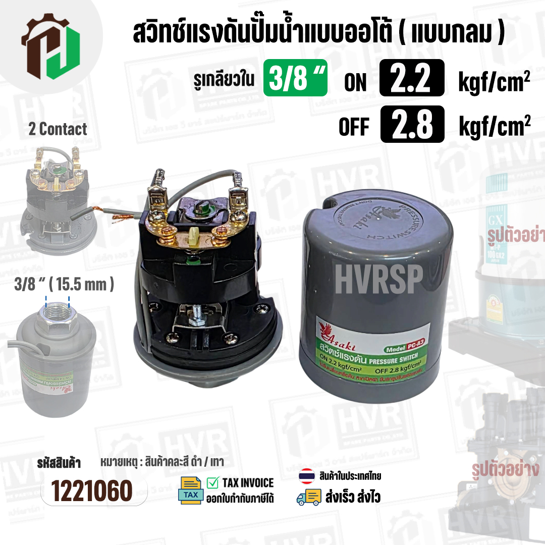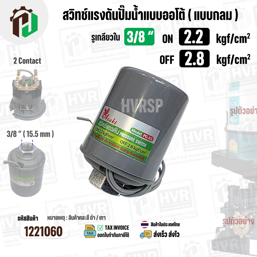 > อะไหล่ปั้มน้ำไฟฟ้า > สวิทซ์ปั้มน้ำ > สวิทซ์ปั้มน้ำออโต้ ( แบบกลม ) ON 2.2 kgf/cm2 / OFF 2.8 kgf/cm2 รูเกลียวใน 3/8" ( 2 Contact ) ( Asaki ) #M