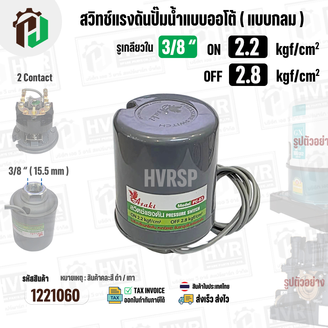 สวิทซ์ปั้มน้ำออโต้ ( แบบกลม ) ON 2.2 kgf/cm2 / OFF 2.8 kgf/cm2 รูเกลียวใน 3/8" ( 2 Contact ) ( Asaki ) #M #1221060