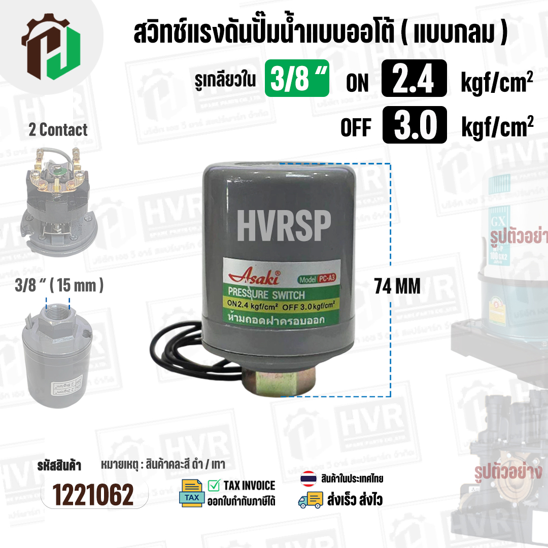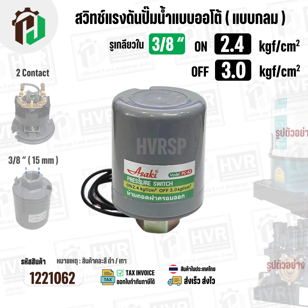 สวิทซ์ปั้มน้ำออโต้ ( แบบกลม ) ON 2.4 kgf/cm2 / OFF 3.0 kgf/cm2 รูเกลียวใน 3/8"" ( 2 Contact ) ( Asaki ) #M #1221062