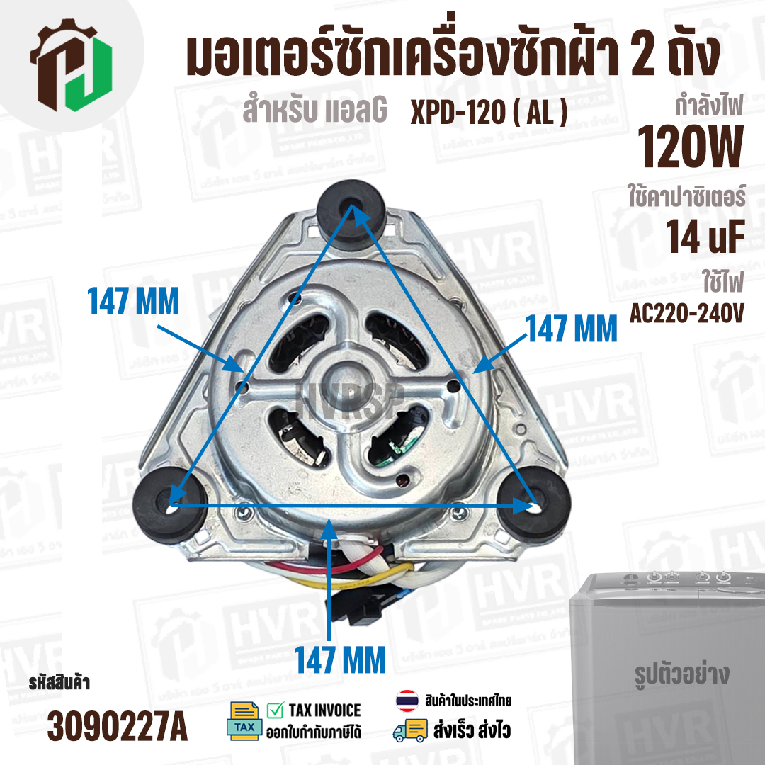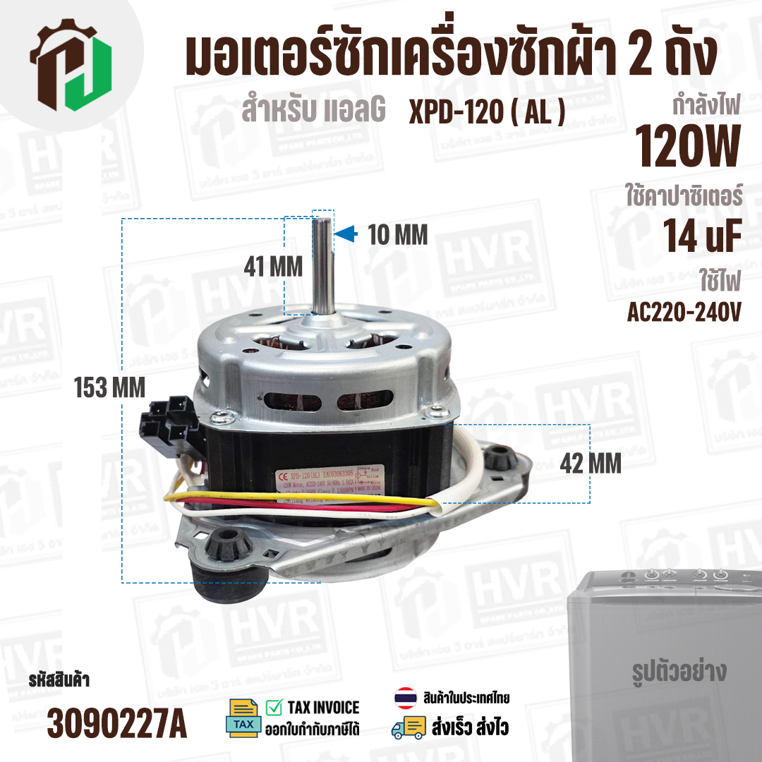 มอเตอร์ซักเครื่องซักผ้า LG 120W 14 uF แกน 10 mm. แกนยาว 42 mm. XPD-120 ( AL ) ( แท้ ) #EAU63063305 #3090227A