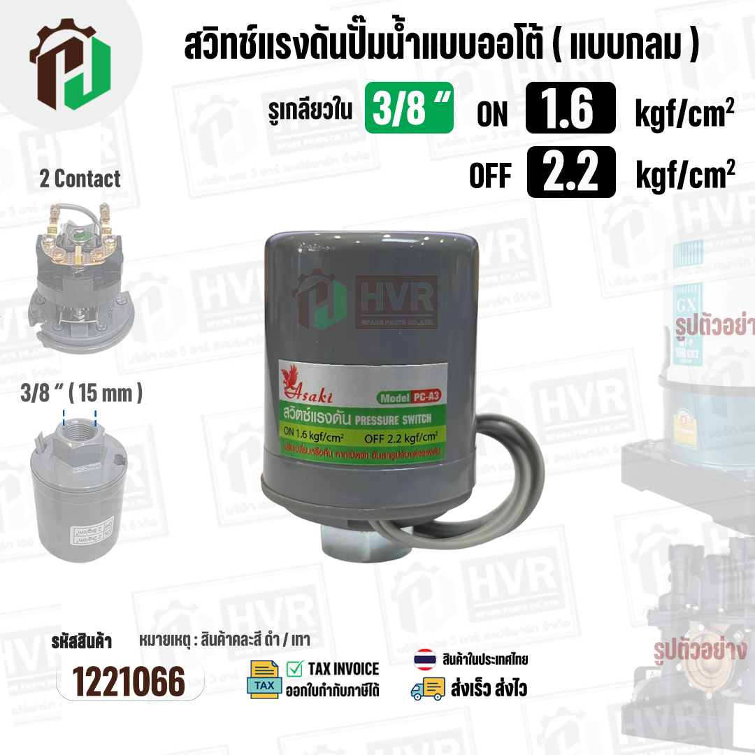 สวิทซ์ปั้มน้ำออโต้ ( แบบกลม ) ON 1.6 kgf/cm2 / OFF 2.2 kgf/cm2 รูเกลียวใน 3/8"" ( 2 Contact ) ( Asaki ) #1221066