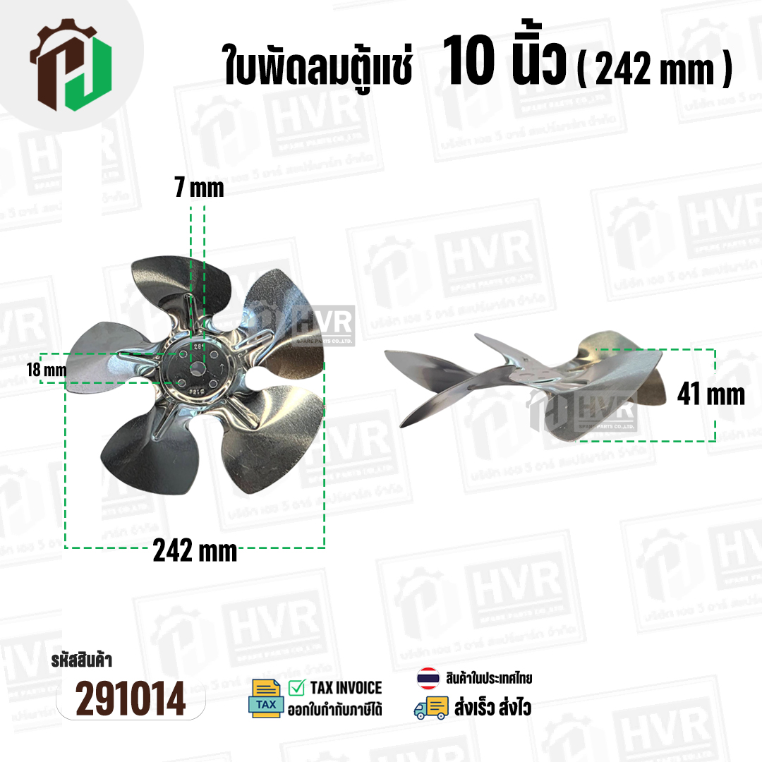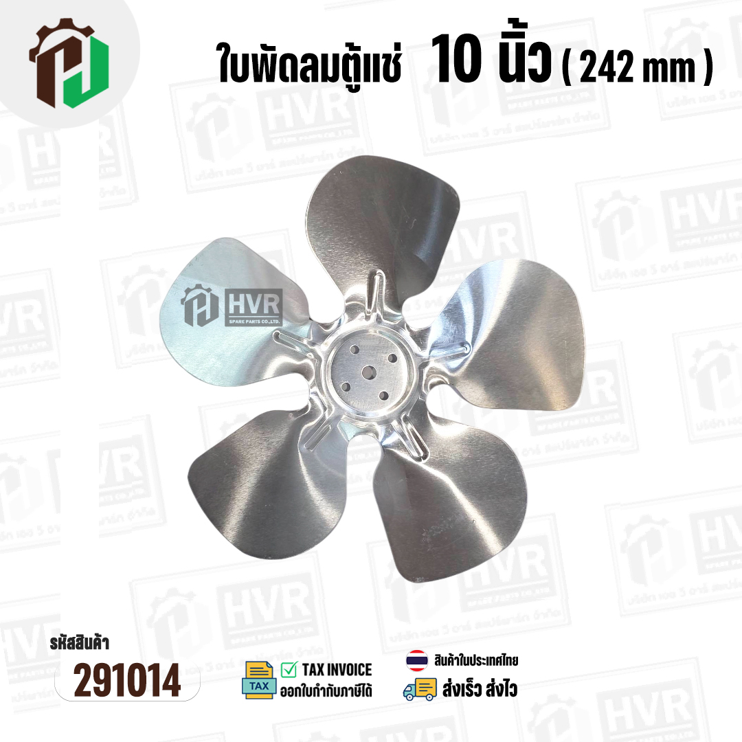 ใบพัดลมตู้แช่ 10 นิ้ว ( 24.2 cm ) รูกลาง 7 mm ( ใบพัด 5 แฉก ) ( อลูมิเนียม ) #อะไหล่ตู้แช่ #291014