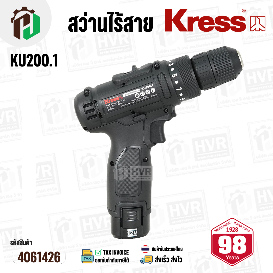 สว่านไร้สาย KRESS รุ่น KU200.1 ( 12V 10 mm. ) + แถมกระเป๋า #4061426