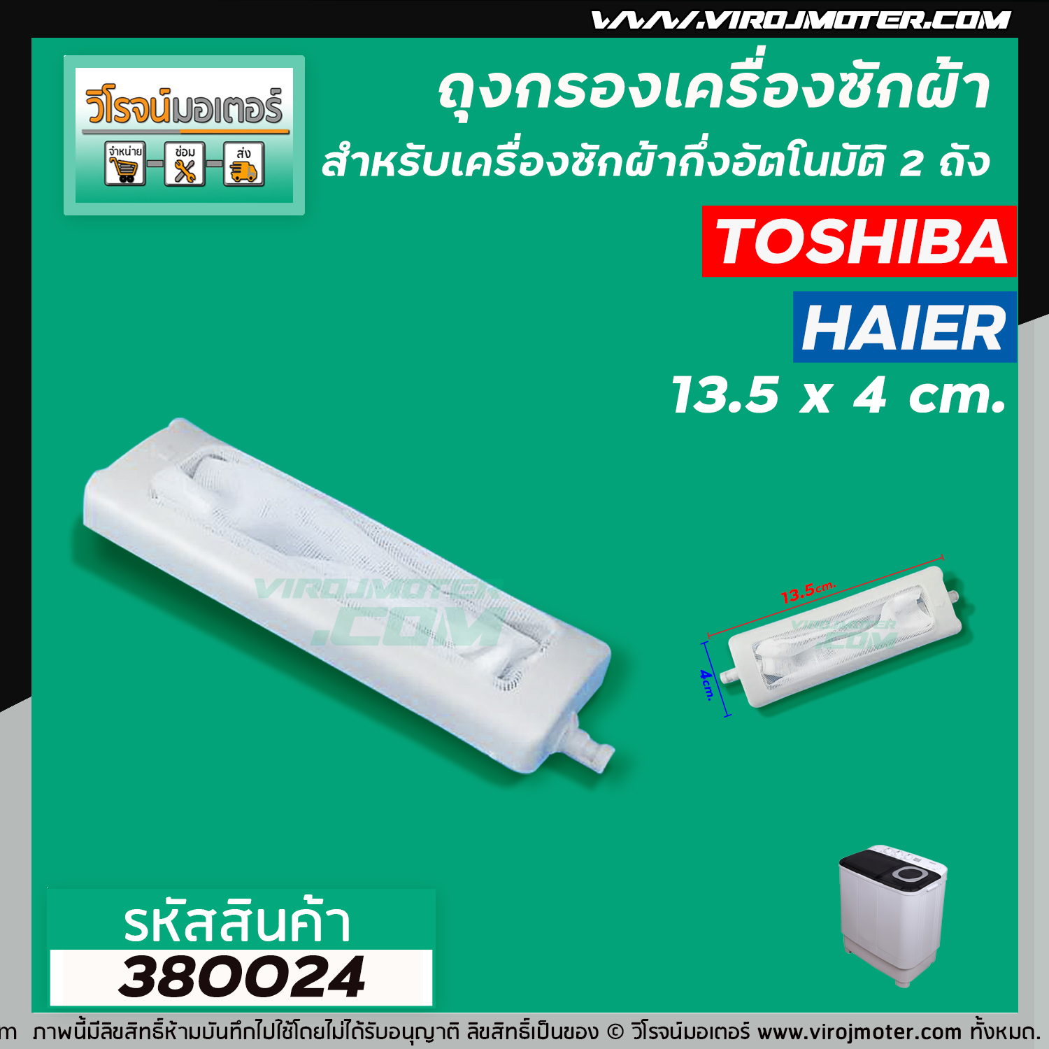>> ใช้กับเครื่องซักผ้า ยี่ห้อ Toshiba กึ่งอัตโนมัติ 2 ถัง และ ถังเดี่ยวอัตโนมัติ