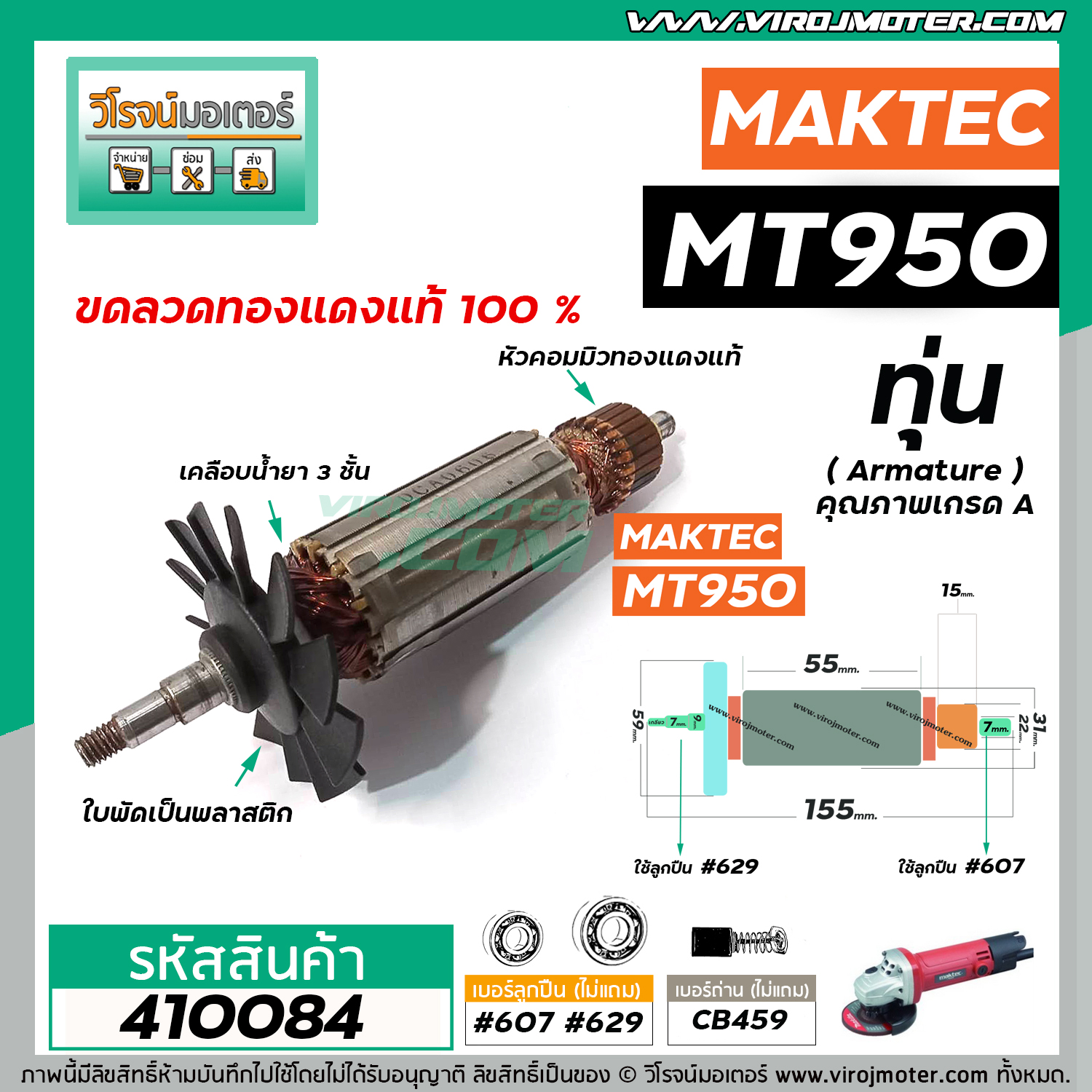 > อะไหล่เครื่องมือช่าง > ทุ่น ( ARMATURE ) > ทุ่นหินเจียร MAKITA ( มากิต้า ) รุ่น MT950 * ทุ่นแบบเต็มแรง ทนทาน ทองแดงแท้ 100% * #410084 ทุ่นหินเจียร MAKITA ( มากิต้า ) รุ่น MT950 * ทุ่นแบบเต็มแรง ทนทาน ทองแดงแท้ 100% * #410084